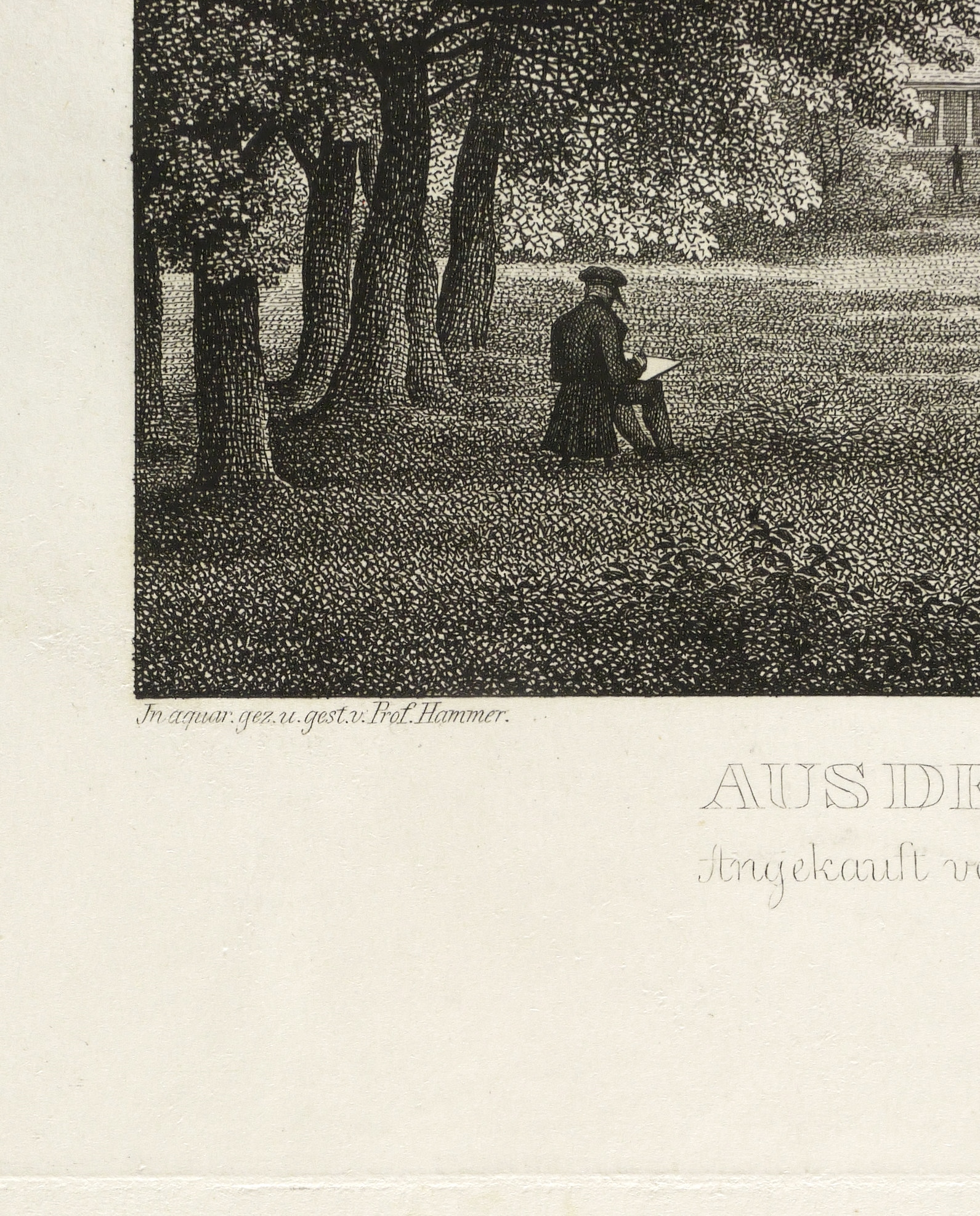 Kovalevski B-C 11. – Aus: Bilderchronik des Sächsischen Kunstvereins (Dresden: Sächsischer Kunstverein 1828-1836). – In der Platte links unten signiert: ″In aquar. gez. u. gest. v. Prof. Hammer.″ Mittig Titel. Darunter bezeichnet: ″Angekauft vom Sächsischen Kunstvereine und bey der Verloosung 1829 gwonnen ...″ – Originalrandiges Blatt. Im Randbereich schwach angeschmutzt. Insgesamt guter Erhaltungszustand.