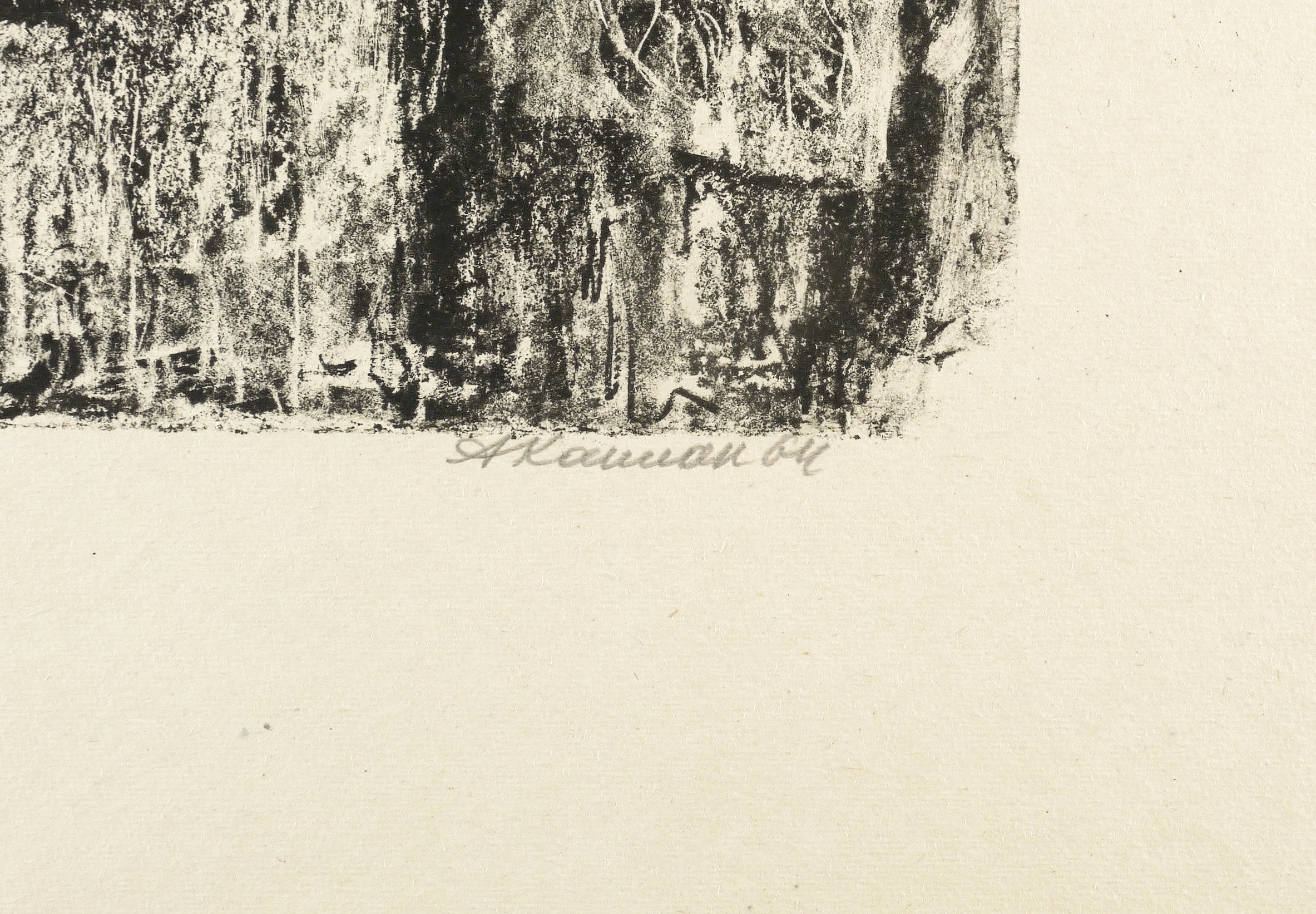 1964. Lithografie / Kreide- & Pinsellithografie, partiell geschabt, in Schwarz, auf grobem gelbem Velin. – Originale Künstlergrafik, von Anatoli Kaplan. – 41,4 x 29,1 cm (Darstellung / Druckbild), 63 x 48 cm (Blatt).