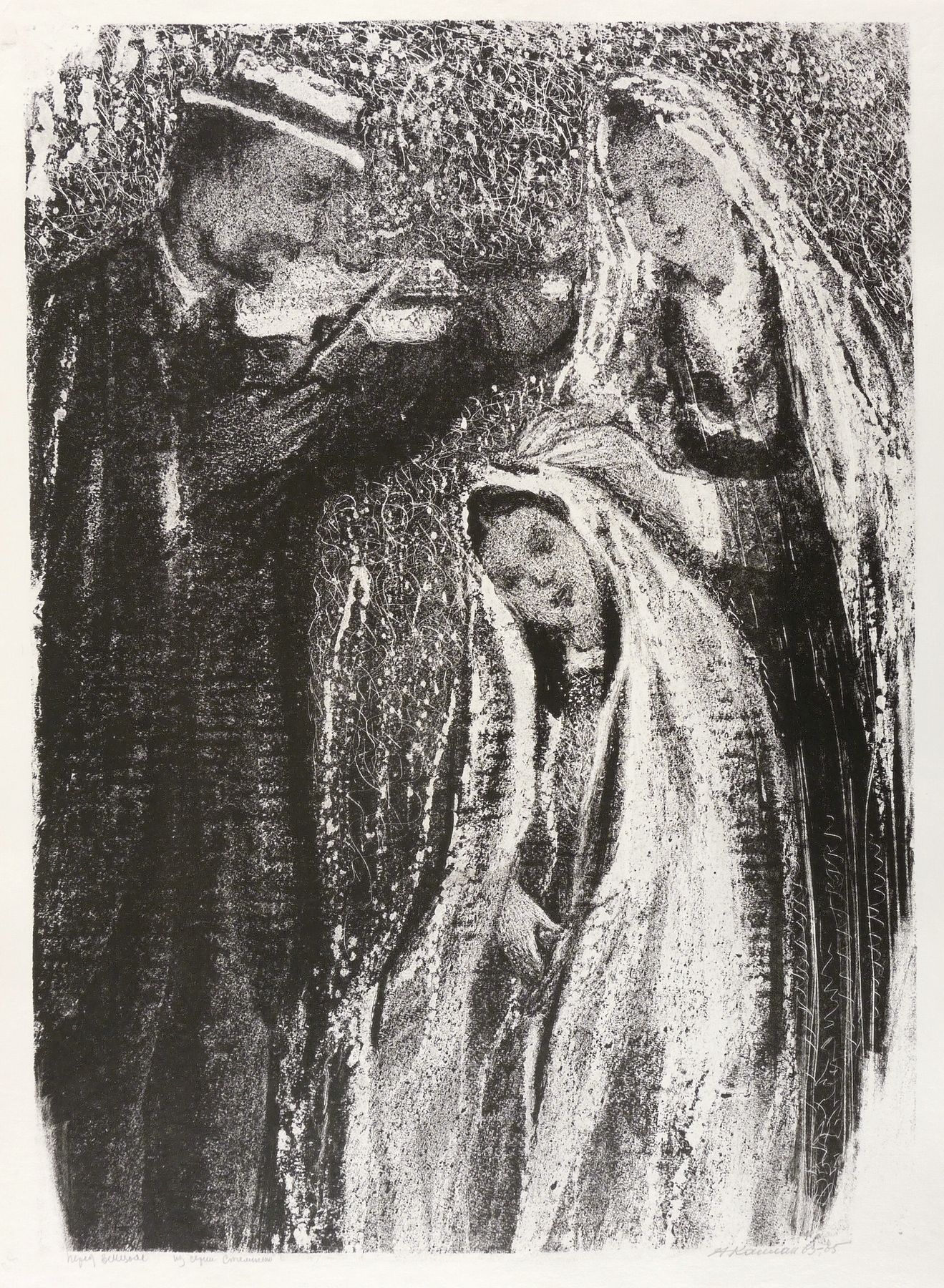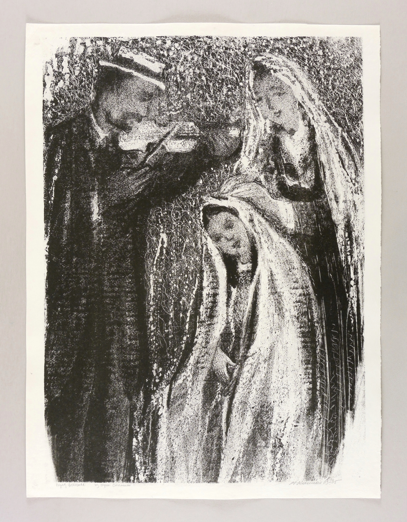 Mayer-Strodt IX 16. – Rechts unten in Bleistift kyrillisch signiert und datiert: ″АКаплан 63-65″. Links kyrillisch betitelt. – Blatt Nr. 16 aus der Folge ″Stempenju″ zum gleichnamigen Roman von Scholem Alejchem. – Provenienz: Sammlung Erhard Frommhold, Dresden. Frommhold war Cheflektor vom Verlag der Kunst Dresden. – Sehr guter Zustand.