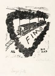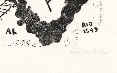 1943. Holzschnitt, in Schwarz, auf leichtem hellchamois Similijapan. – Originale Künstlergrafik, von Axl Leskoschek. – 10,7 x 9,5 cm (Darstellung / Druckstock), 17 x 12 cm (Blatt).