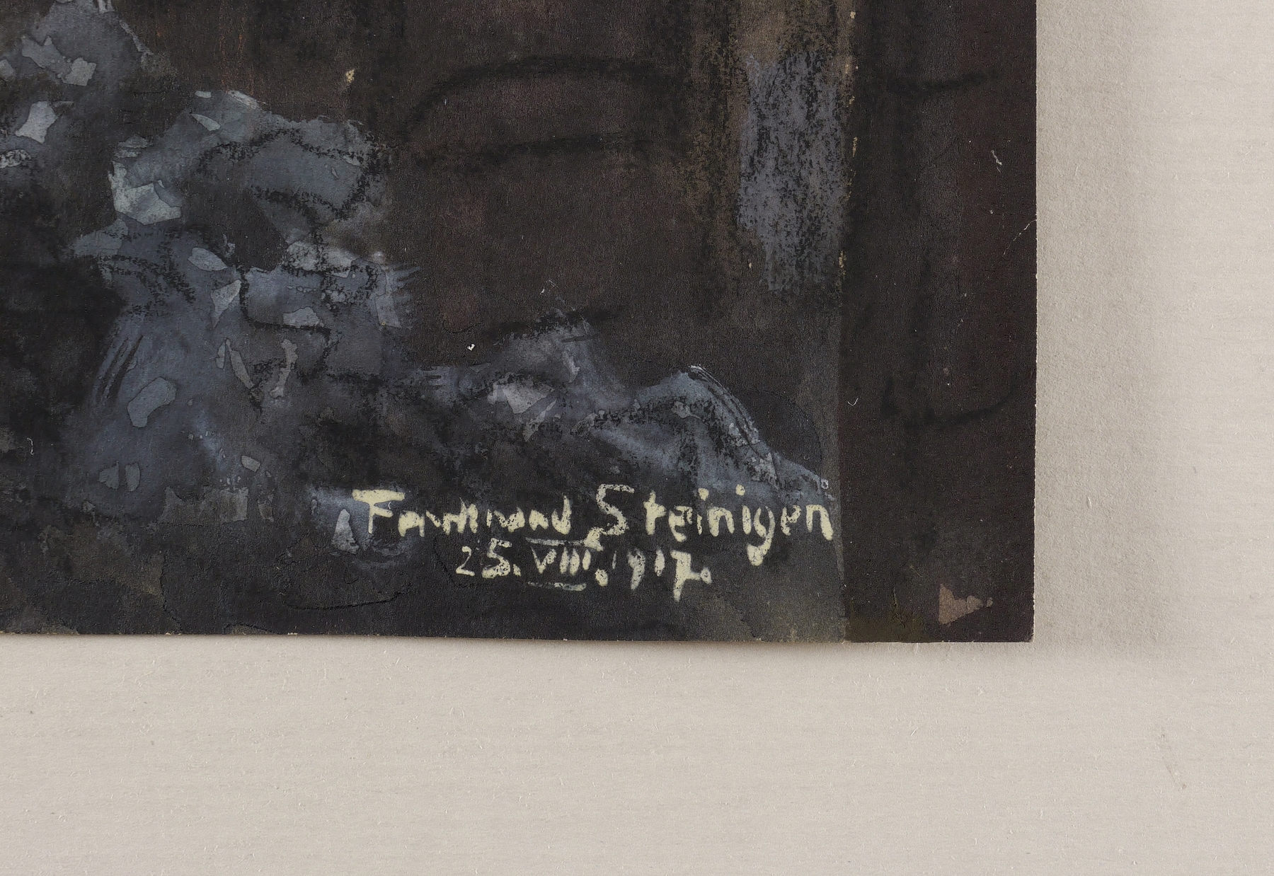 1917. Mischtechnik / Aquarell, Gouache & Farbkreide, auf braun getöntem Velin. – Originale Künstlergrafik, von Ferdinand Steiniger. – Unikat. – 32,2 x 21,1 cm (Darstellung / Blatt).