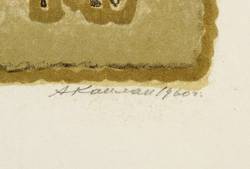 1960. Farblithografie / Pinsellithografie, in 4 Farben, auf Velinkarton. – Originale Künstlergrafik, von Anatoli Kaplan. – 37,3 x 53,2 cm (Darstellung / Druckbild), 48 x 63 cm (Blatt).