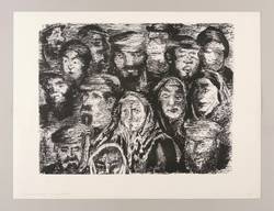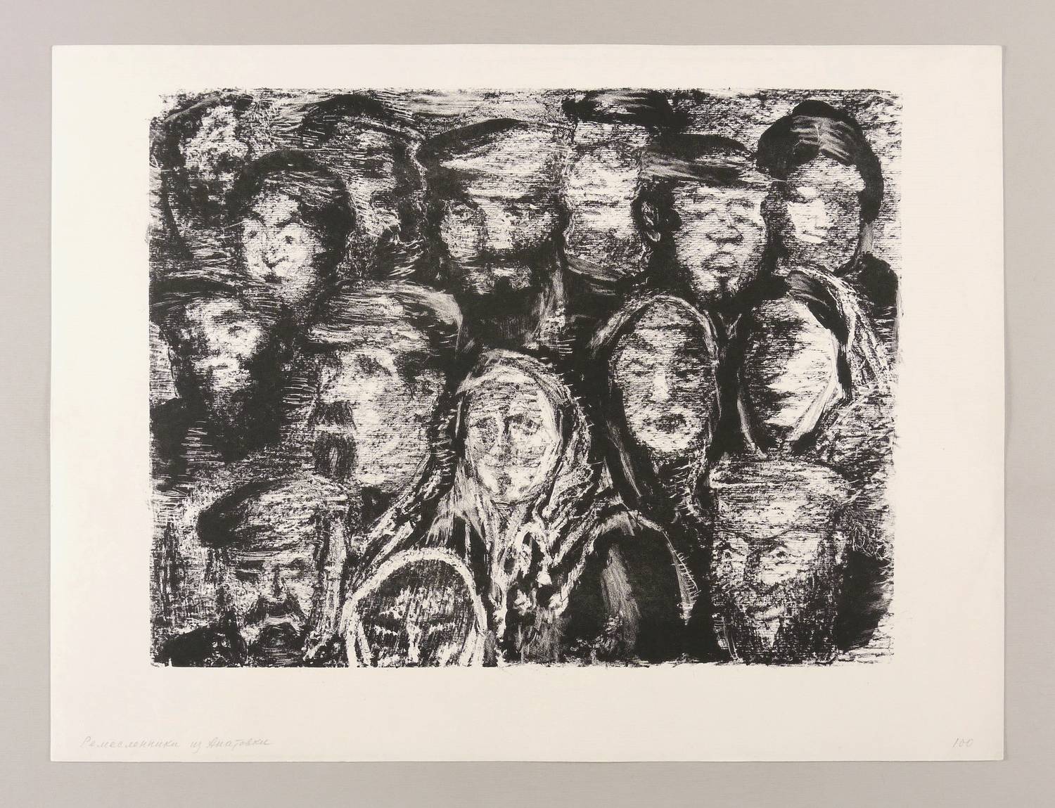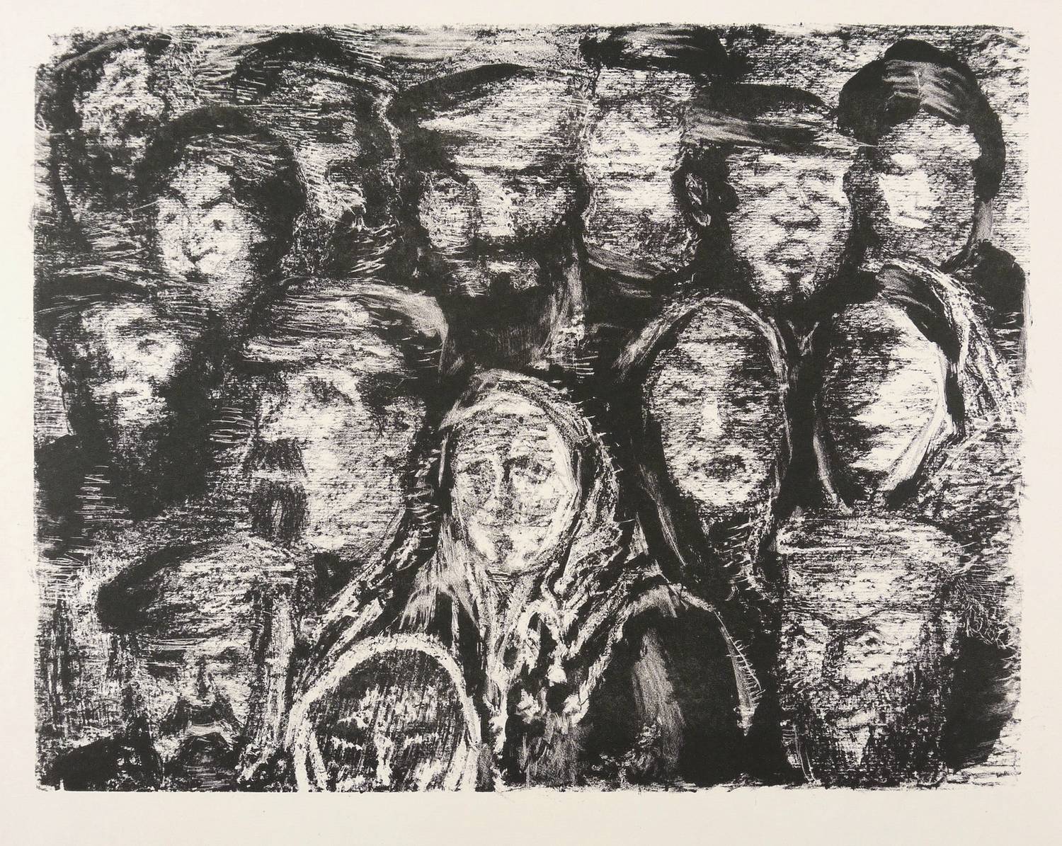 1957-1960. Lithografie / Pinsel- & Kreidelithografie, partiell gewischt, in Schwarz, auf weichem rauem Velin. – Originale Künstlergrafik, von Anatoli Kaplan. – 37,8 x 49,0 cm (Darstellung / Druckbild), 47 x 63 cm (Blatt).