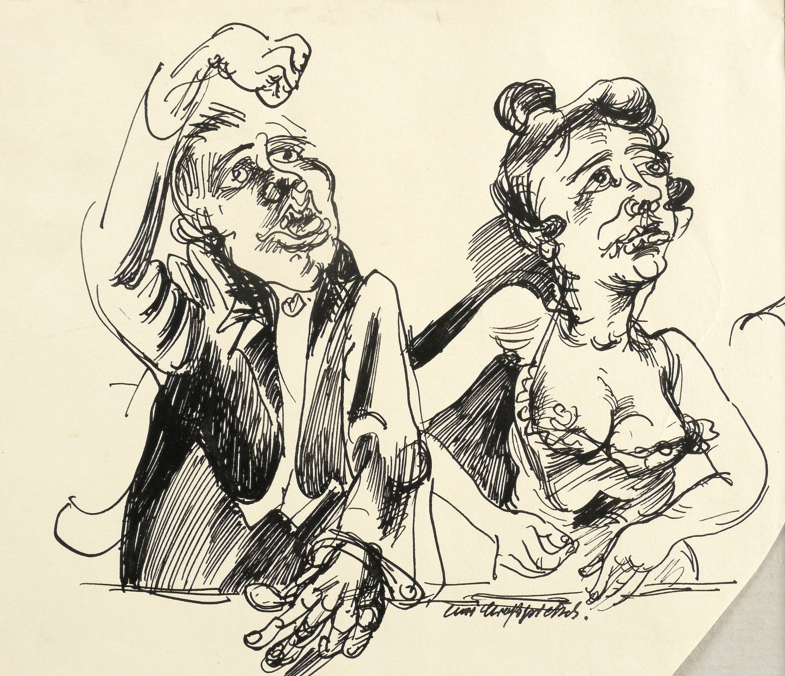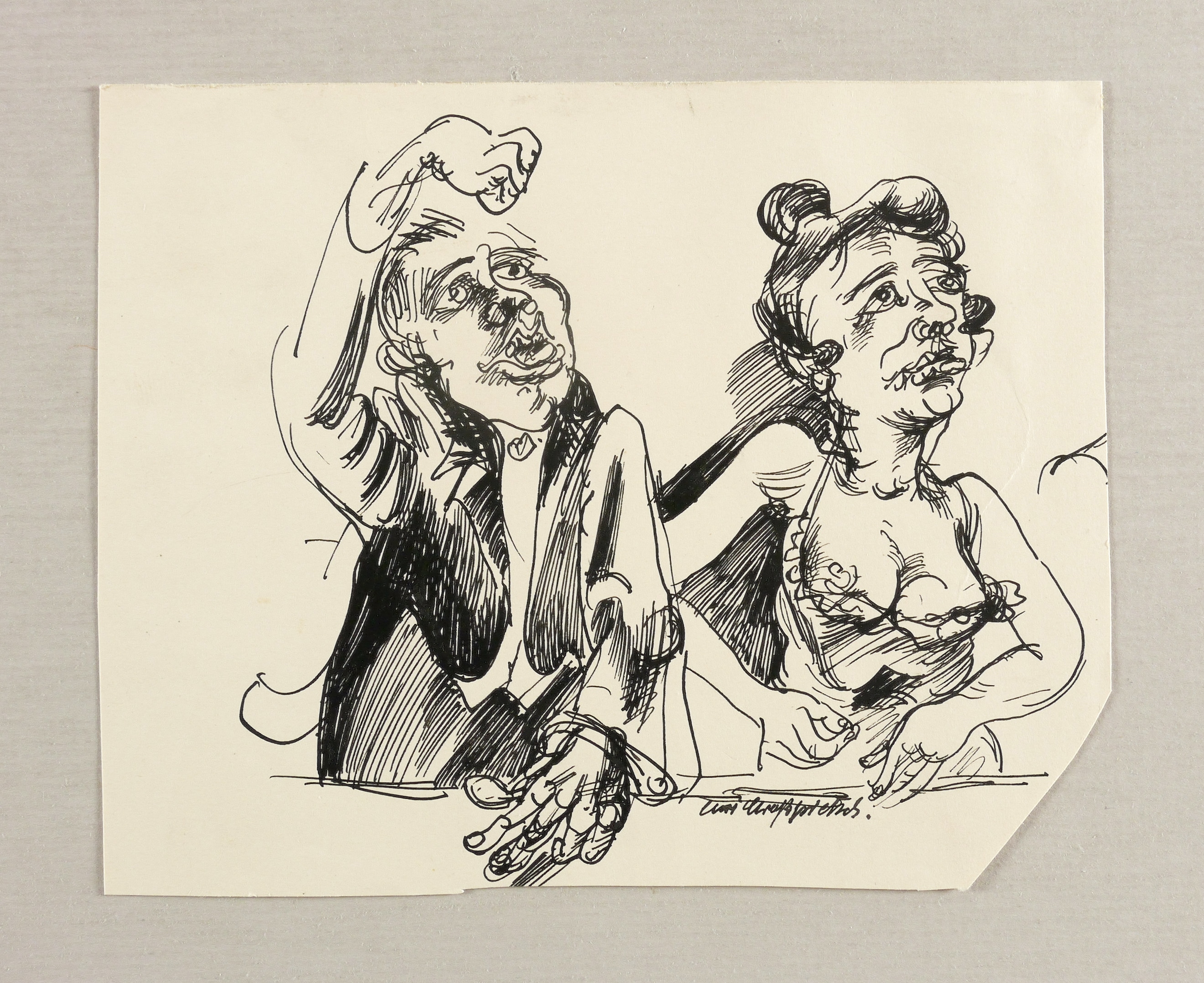 Um 1920. Zeichnung / Federzeichnung, in schwarzer Tusche, auf hellgelbem Velin. – Originale Künstlergrafik, von Curt Großpietsch. – Unikat. – 13,0 x 16,2 cm (Darstellung / Blatt).