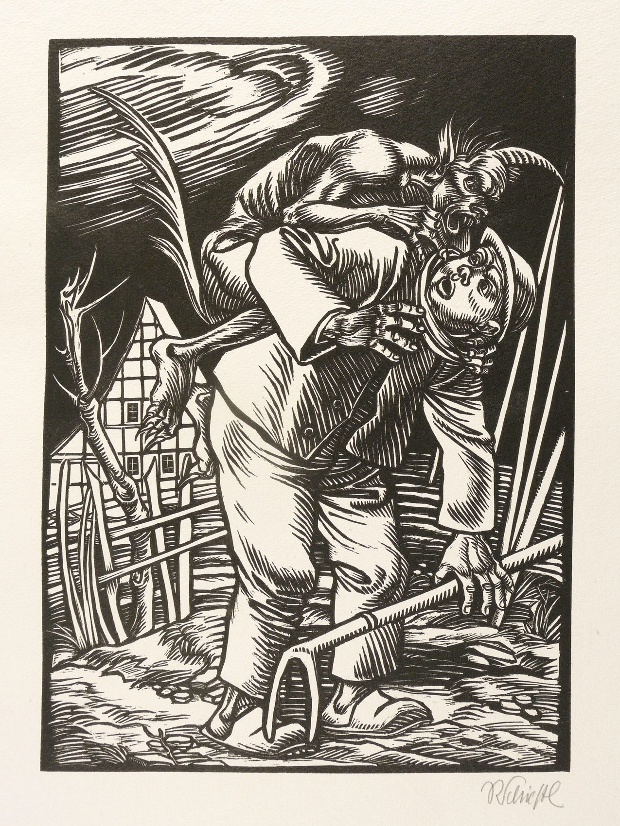 1927. Holzschnitt, in Schwarz, auf rauem weißlichem Velin. – Originale Künstlergrafik, von Rudolf Schiestl. – 28,8 x 20,7 cm (Darstellung / Druckbild), 41 x 31 cm (Blatt).