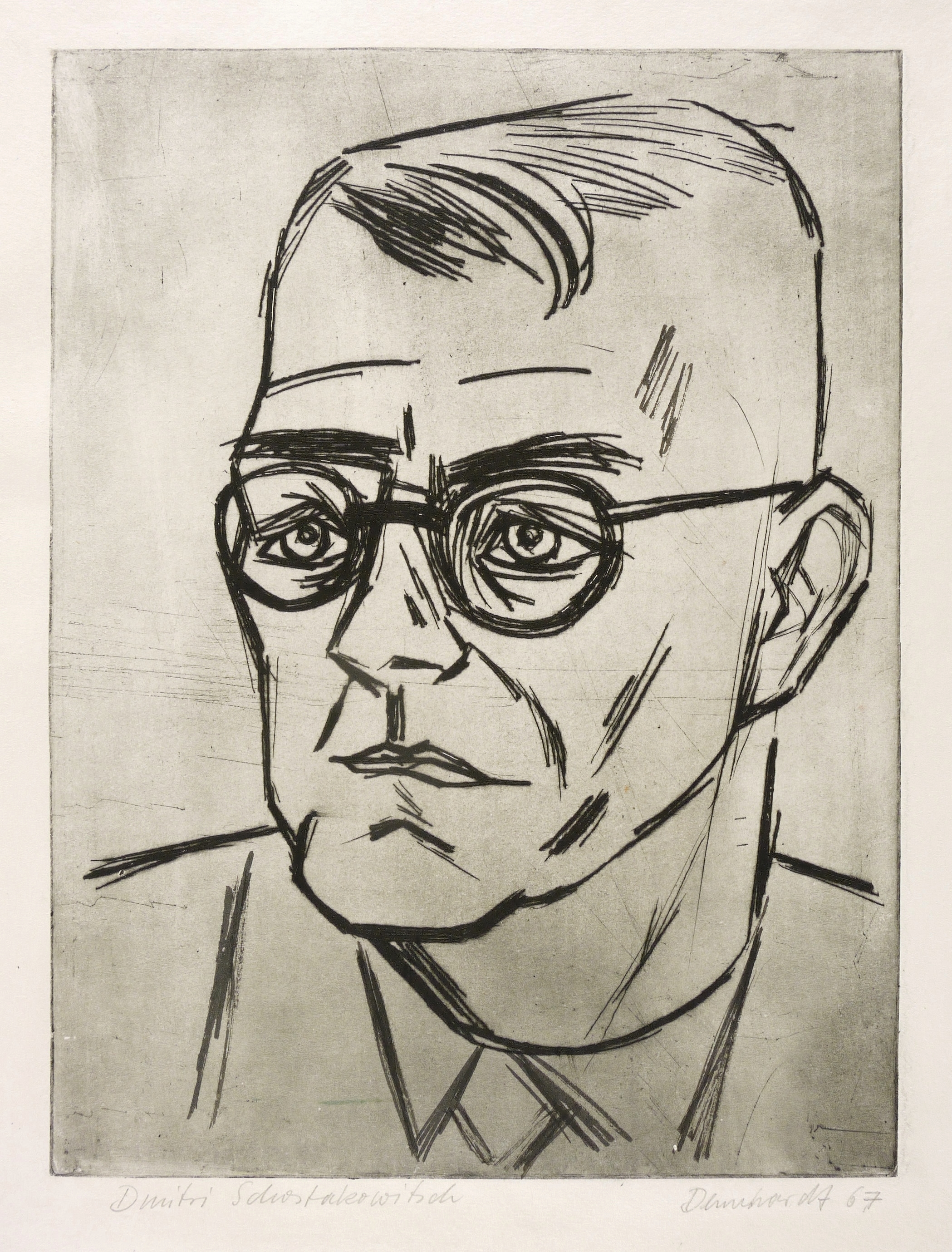 Rechts unten in Bleistift signiert und datiert: ″Dennhardt 67″. Links Titel: ″Dmitri Schostakowitsch″. – Seltenes Frühwerk des Künstlers. – Sehr guter Zustand.