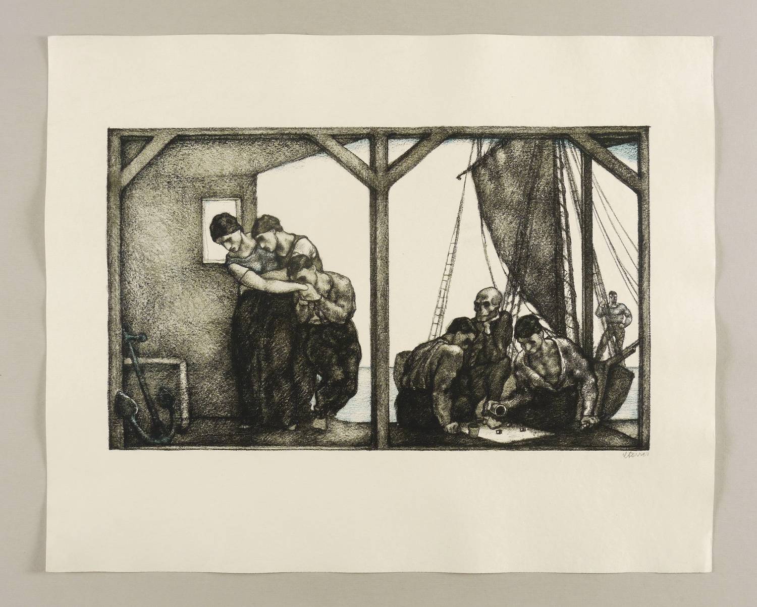 1919. Lithografie / Kreidelithografie, in Schwarz, auf festem hellchamois Velin. – Originale Künstlergrafik, von Karl Sterrer. – Vorzugsdruck. – 27,1 x 45,4 cm (Darstellung / Druckbild), 45 x 56 cm (Blatt).