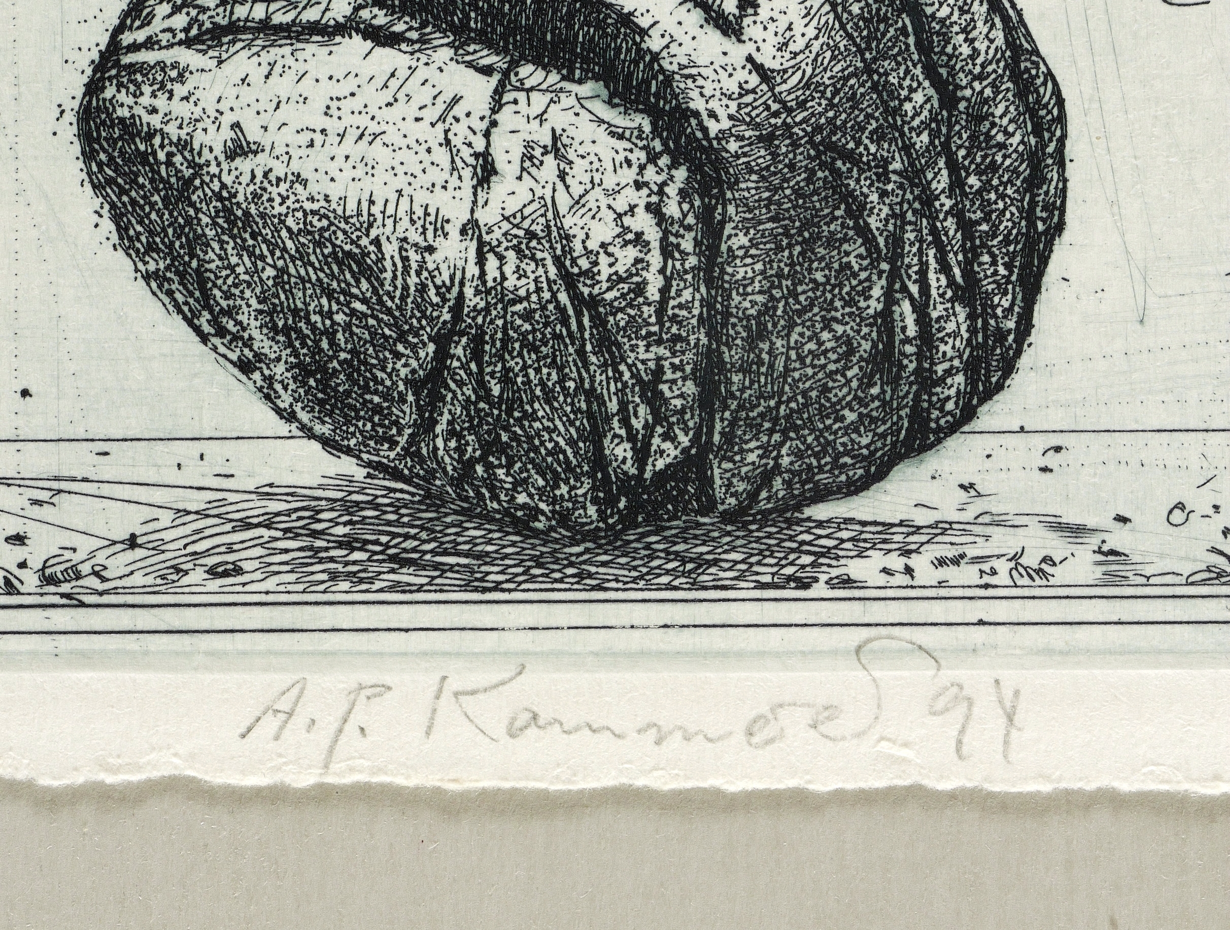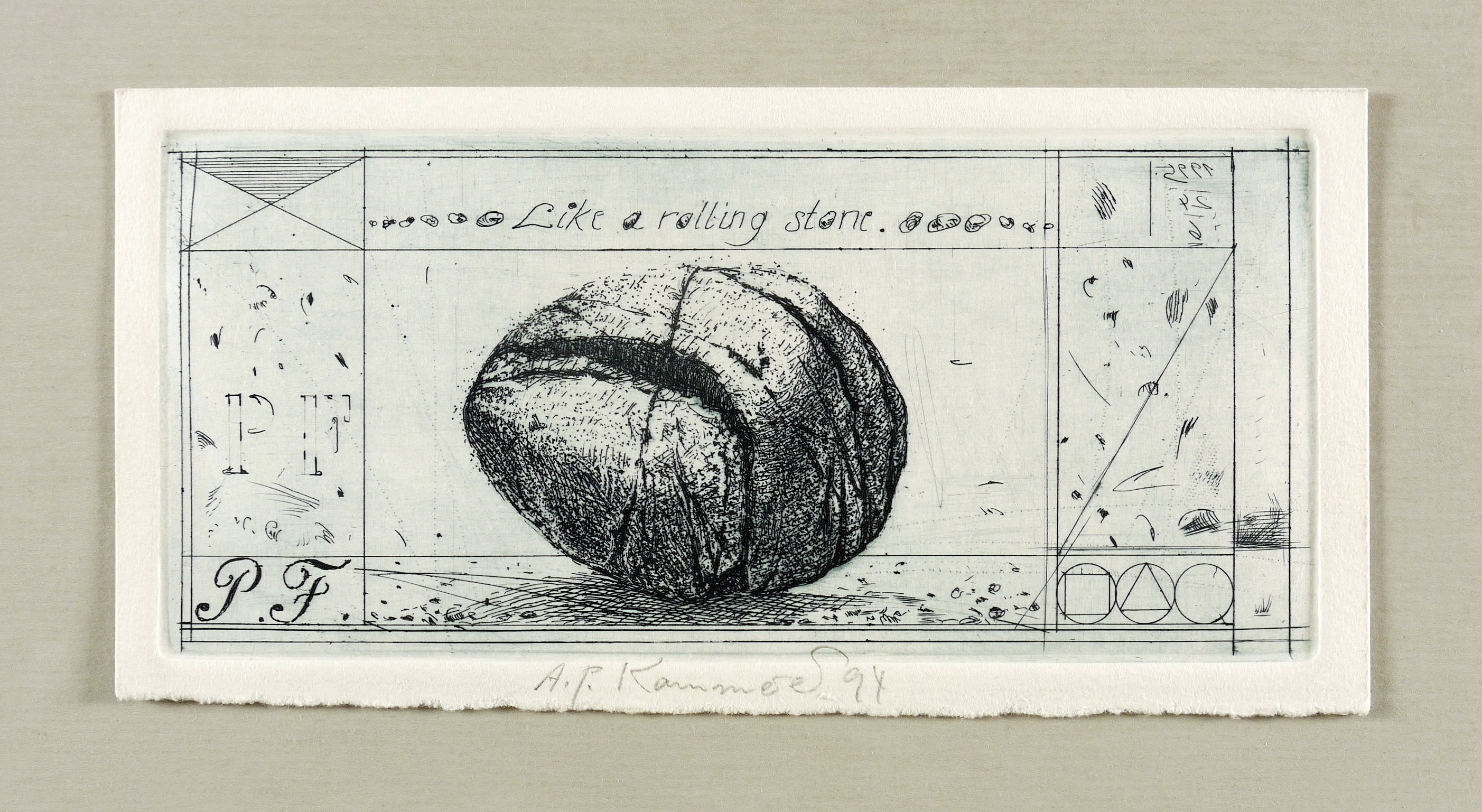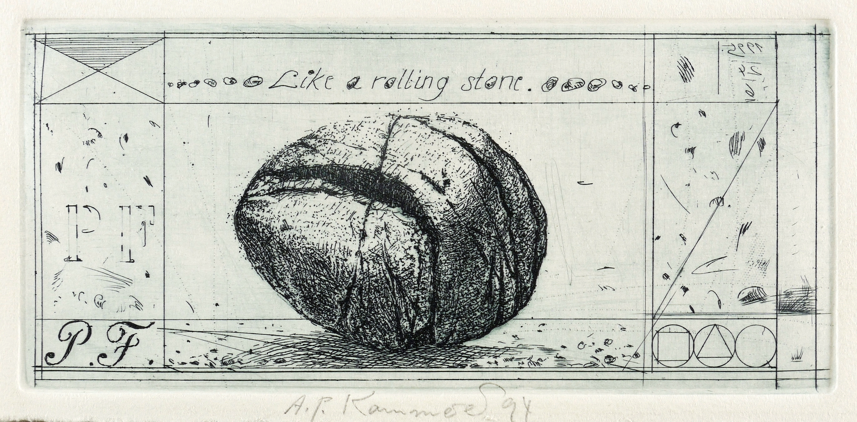 Unterhalb in Bleistift signiert und datiert: ″A.P. Kammerer 94″. In der Platte oben Inschrift: ″Like a rolling stone.″ – Rückseitig stärkere Montagespuren. Mäßig guter Zustand.