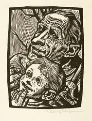 1950-1960. Holzschnitt, in Schwarz, auf glattem hellgelbem Velin. – Originale Künstlergrafik, von Rudolf Nehmer. – 12,1 x 9,0 cm (Darstellung / Druckstock), 21 x 14 cm (Blatt).