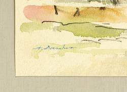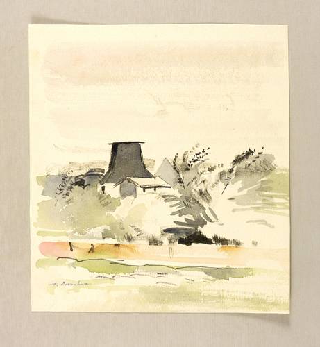 Links unten in Kugelschreiber signiert.: ″A. Drescher″. Verso in Bleistift bezeichnet, u.a.: ″Schwarze Mühle / Vahrendorf″. Wasserzeichen von Fabriano. – Auf der Rückseite weitere Skizzen-Fragmente in Bleistift oder Graphit. – Sehr guter Zustand.