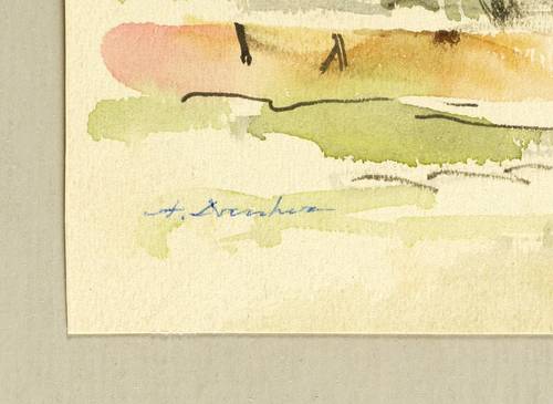 1950-1955. Aquarell, auf hellgelbem Fabriano. – Originale Künstlergrafik, von Arno Drescher. – Unikat. – 20,6 x 18,5 cm (Darstellung / Blatt).