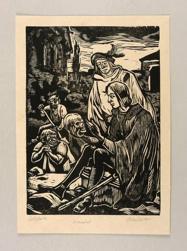 Rechts unten in Bleistift signiert: ″Otto Schubert″. Links bezeichnet: ″Selbstdruck″. Mittig Titel: ″Hamlet″. – Entstanden für die Grafik-Mappe ″Shakespeare-Gedenken″ von Otto Schubert. – Sehr guter Zustand.