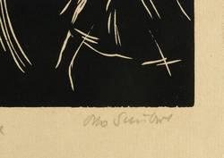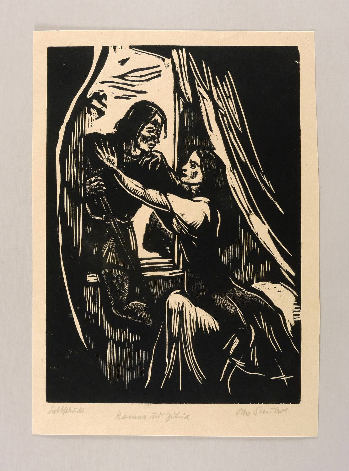Rechts unten in Bleistift signiert: ″Otto Schubert″. Links bezeichnet: ″Selbstdruck″. Mittig Titel: ″Romeo und Julia″. – Entstanden für die Grafik-Mappe ″Shakespeare-Gedenken″ von Otto Schubert. – Sehr guter Zustand.