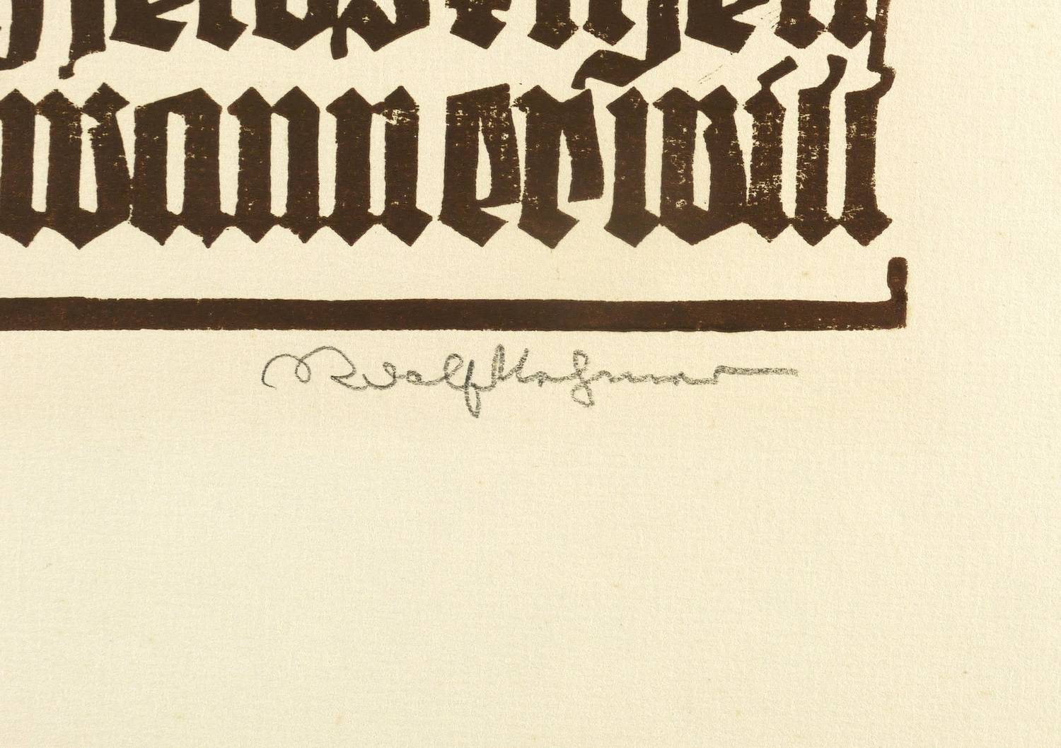 1946. Holzschnitt, in Dunkelbraun, auf hellgelbem Maschinenbütten. – Originale Künstlergrafik, von Rudolf Nehmer. – 26,2 x 19,8 cm (Darstellung / Druckbild), 42 x 32 cm (Blatt).