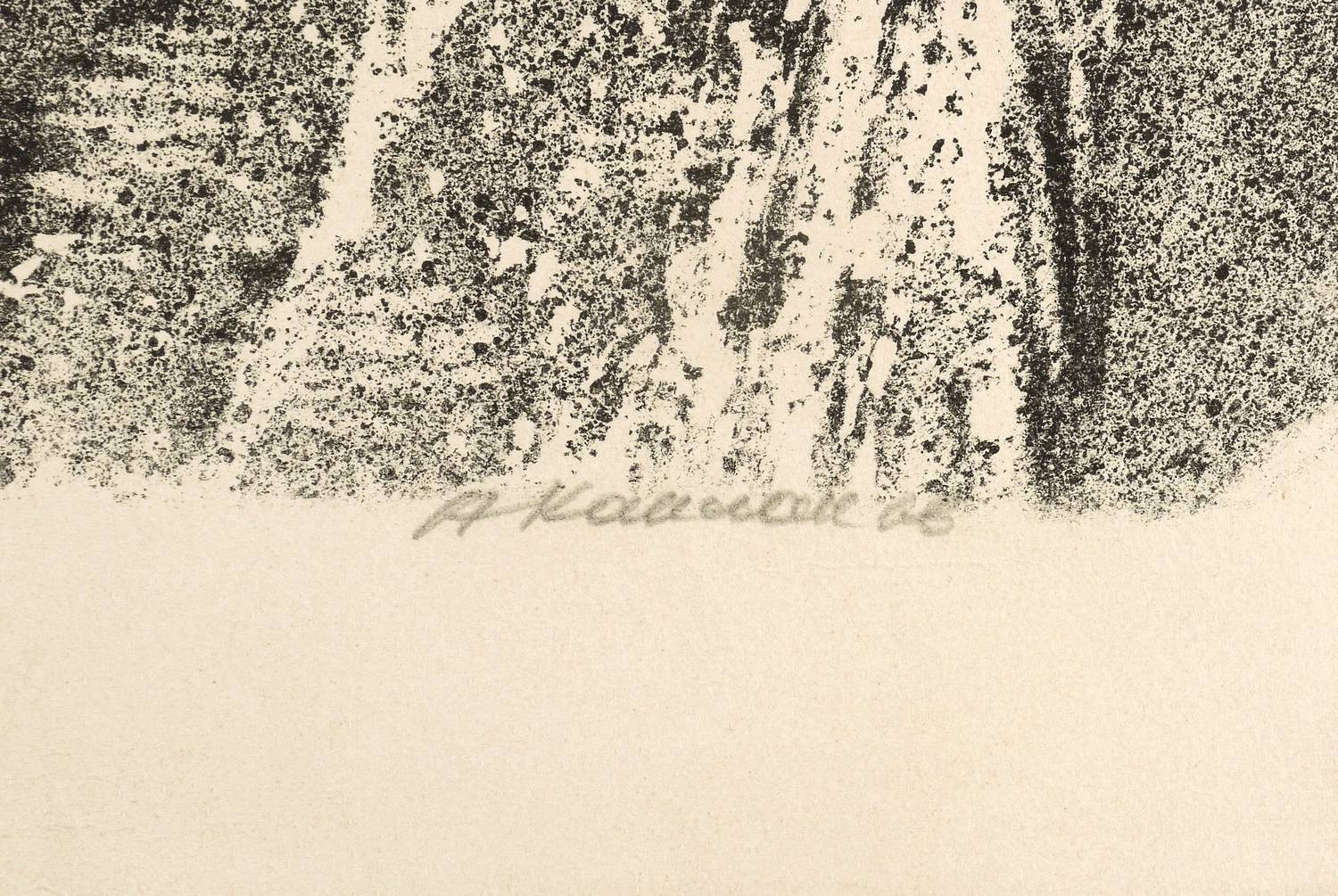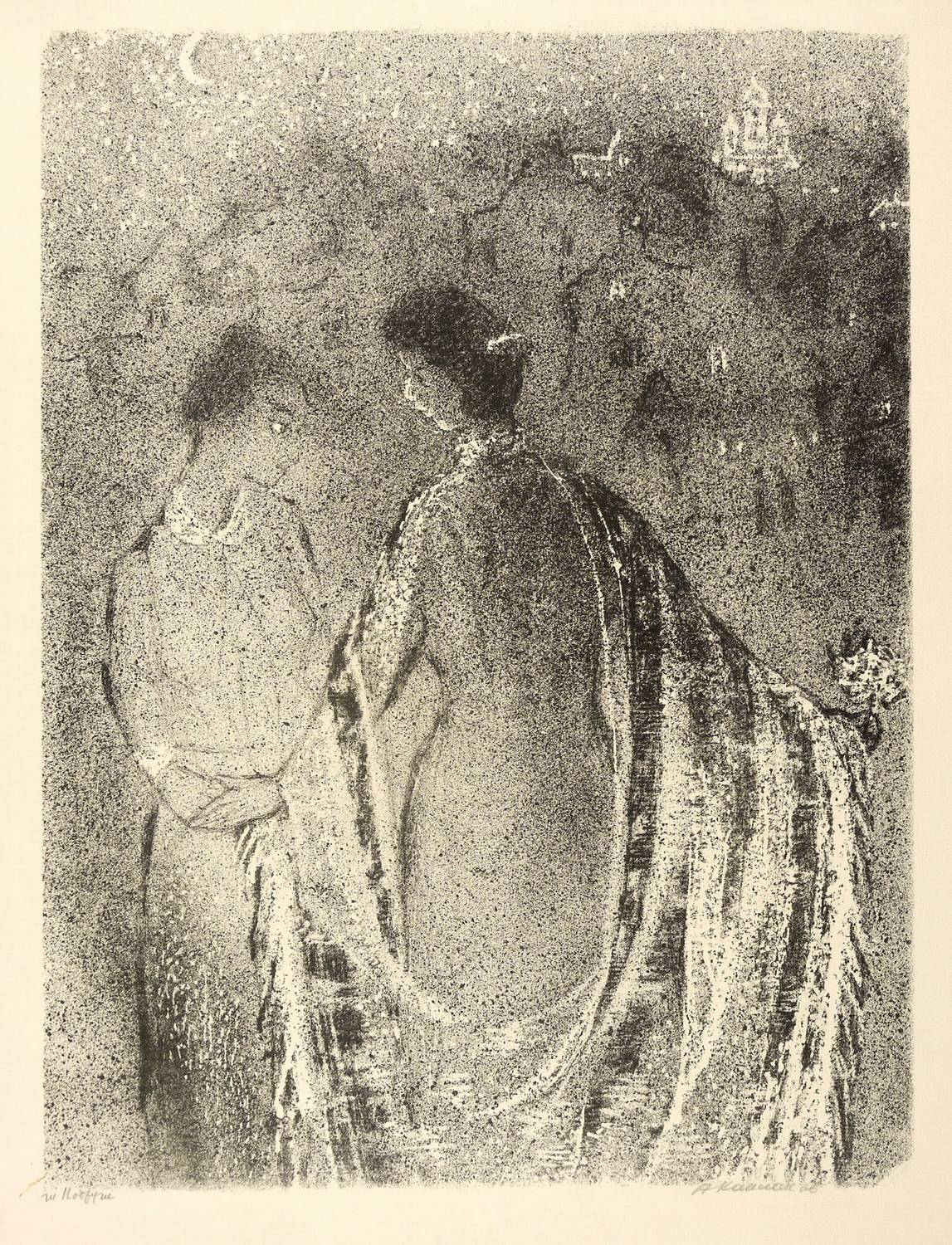 Mayer-Strodt IX 14. – Rechts unten in Bleistift kyrillisch signiert und datiert: ″АКаплан 66″. Links kyrillisch betitelt. – Blatt Nr. 14 aus der Folge ″Stempenju″ zum gleichnamigen Roman von Scholem Alejchem. – Tadellos. Sehr guter Zustand.