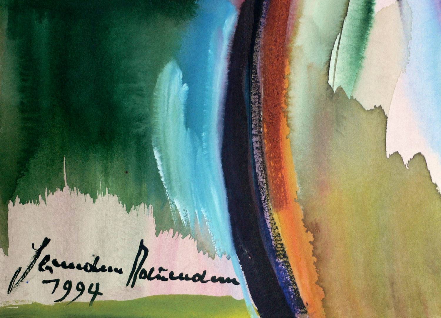 Links unten mit Pinsel signiert und datiert: ″Hermann Naumann 1994″. Links oben nochmlas signiert und datiert. Verso in Bleistift Titel. – Leuchtend frisches Kolorit. Sehr guter Zustand.