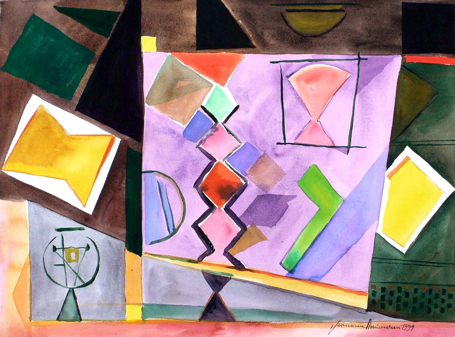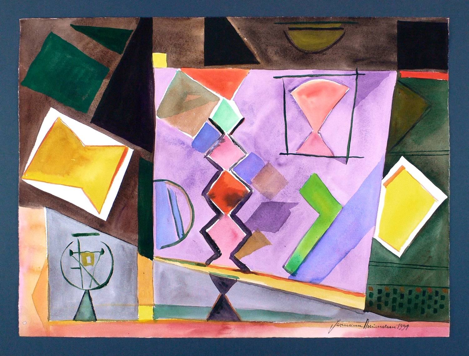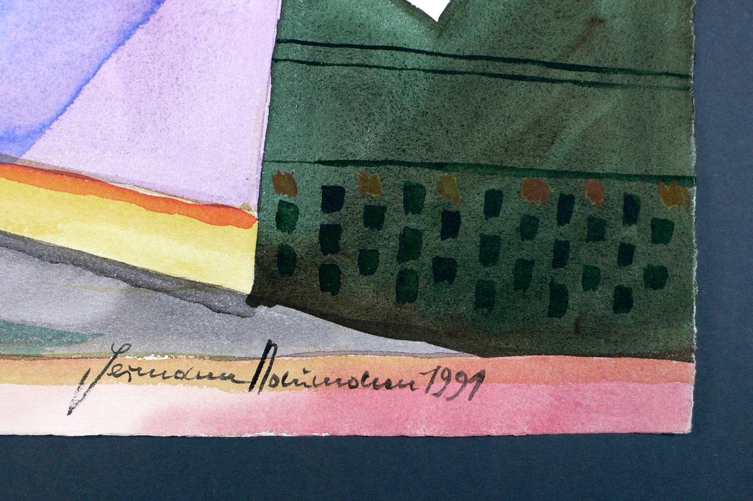 1991. Aquarell, auf genarbtem hellchamois Hahnemühle-Bütten. – Originale Künstlergrafik, von Hermann Naumann. – Unikat. – 55,5 x 75,0 cm (Darstellung / Blatt).