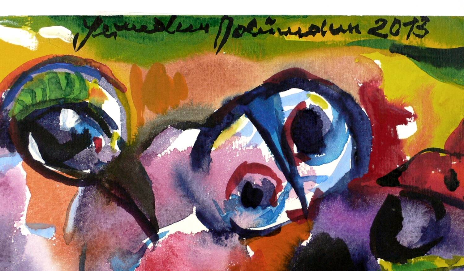 2013. Aquarell, auf hellgelbem Aquarellkarton. – Von Hermann Naumann. – 24,0 x 32,0 cm (Darstellung / Blatt), 30 x 42 cm (Trägerblatt).