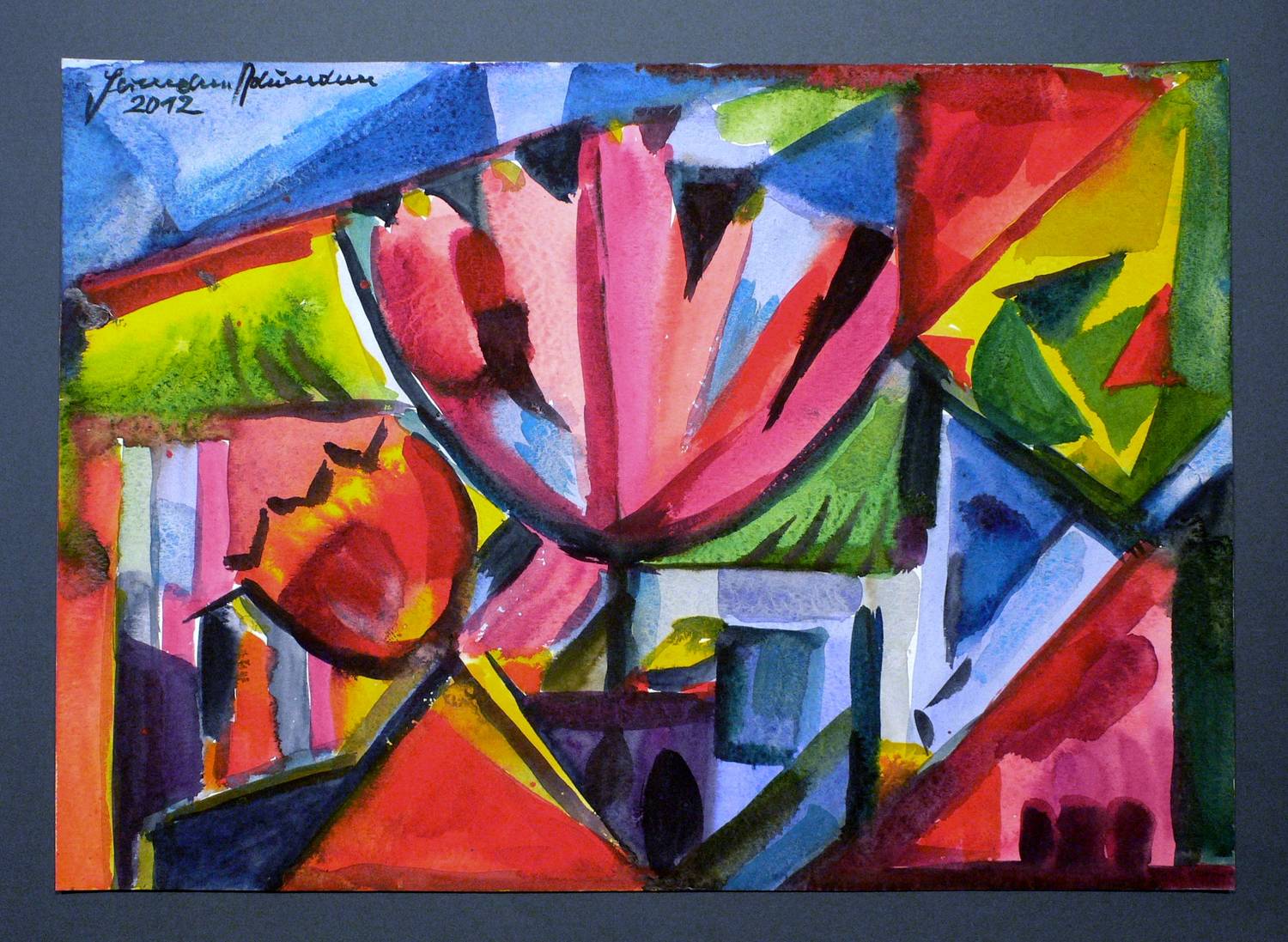 2012. Aquarell, auf schwerem Büttenpapier. – Originale Künstlergrafik, von Hermann Naumann. – Unikat. – 35,5 x 51,0 cm (Darstellung / Einfassungslinie).
