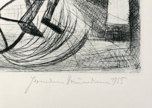 1955. Radierung / Kaltnadelradierung, in Schwarz, auf hellchamois Büttenpapier. – Originale Künstlergrafik, von Hermann Naumann. – Probedruck. – 29,8 x 49,7 cm (Darstellung / Platte), 38 x 54 cm (Blatt).
