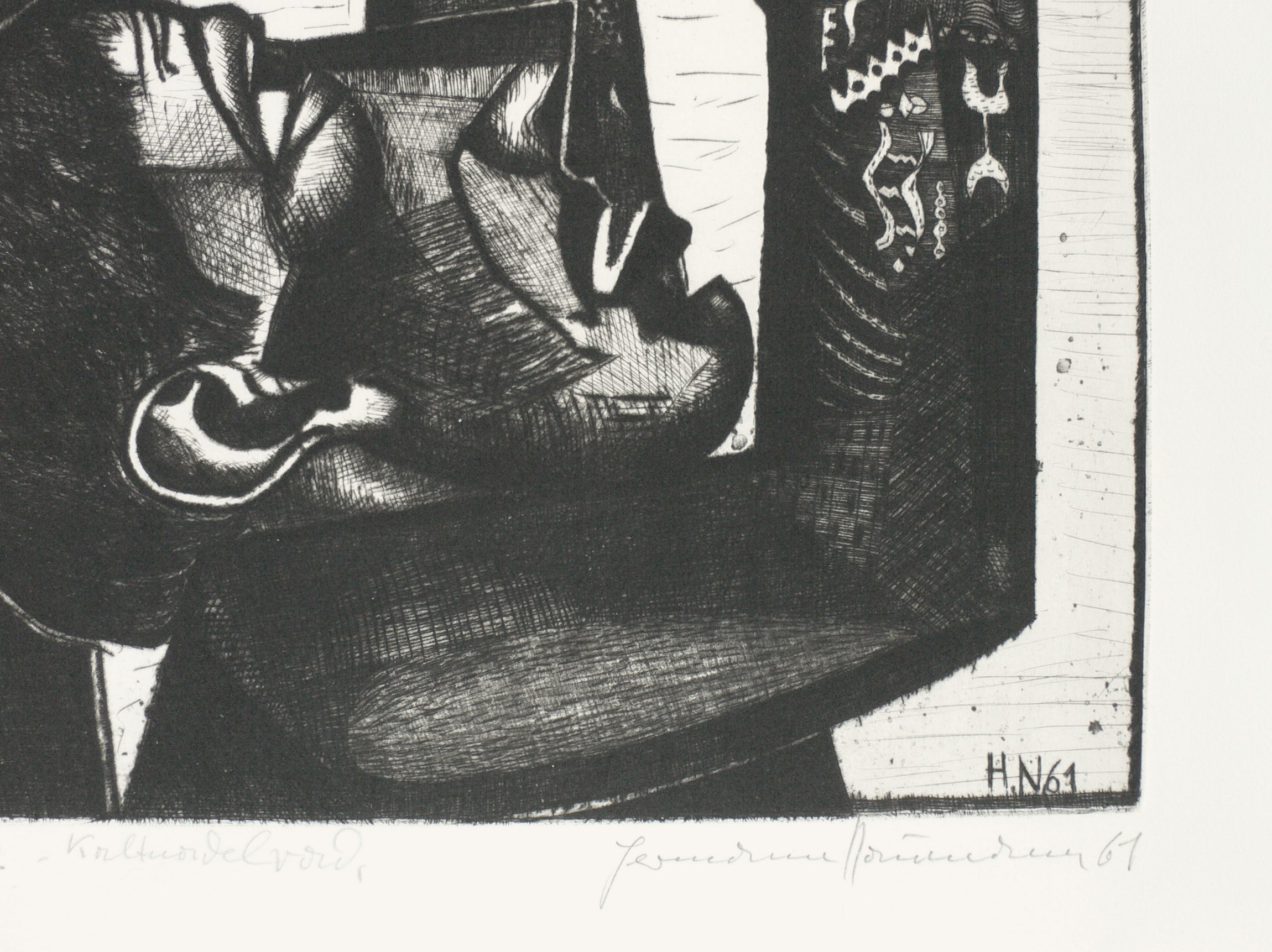 1961. Radierung / Kaltnadel, in Schwarz, auf hellchamois Hahnemühle. – Originale Künstlergrafik, von Hermann Naumann. – 64,0 x 38,0 cm (Darstellung / Platte), 78 x 54 cm (Blatt).
