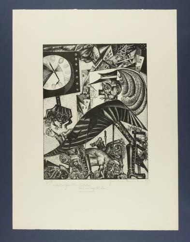 Außerhalb der Darstellung in Bleistift rechts unten signiert und datiert, links unten mit eigenhändiger Auflagenbezeichnung versehen und mittig betitelt. Am Blattrand unten mittig Trockenstempel ″HANDPRESSEN- DRUCK - SCHREITER-PRESSE DRESDEN″. – Papier leicht gegilbt. Blattrand rechts mit Quetschfalte. Sonst frisch erhalten.