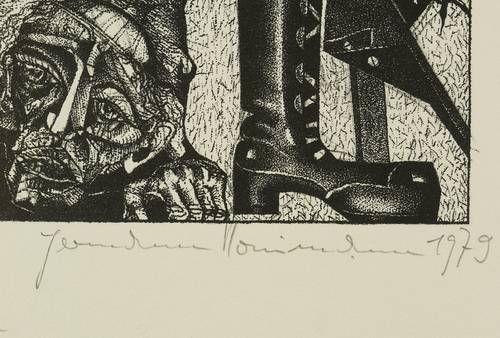 1979. Lithografie / Federlithografie, in Punktiermanier, in Schwarz, auf gelblichem Velin. – Originale Künstlergrafik, von Hermann Naumann. – Auflage Exemplar Nr. 2/80. – 41,5 x 32,5 cm (Darstellung / Druckbild), 69 x 51 cm (Blatt).