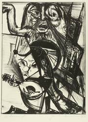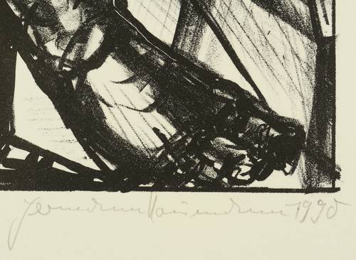 1990. Lithografie / Kreidelithografie, in Schwarz, auf Hahnemühle-Bütten. – Originale Künstlergrafik, von Hermann Naumann. – Druckerexemplar. – 47,0 x 35,0 cm (Darstellung / Stein), 65 x 49,5 cm (Blatt).