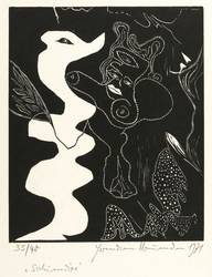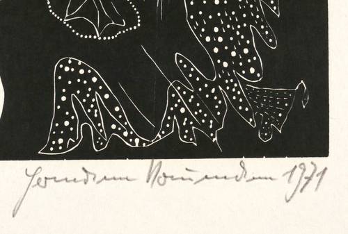 Rechts unten in Bleistift signiert und datiert. Links eigenhändig Auflagenbezeichnung und Titel. – Herrliches Blatt in Niello-Technik Weiß in Schwarz gearbeitet. – Blattecke links oben etwas bestoßen. Sonst tadellos erhalten.