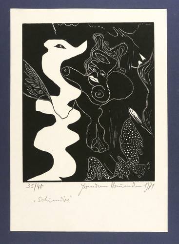 1971. Holzschnitt, auf grobfasrigem Büttenpapier. – Originale Künstlergrafik, von Hermann Naumann. – Auflage Exemplar Nr. 35/40. – 29,9 x 25,0 cm (Darstellung / Druckstock), 42 x 30 cm (Blatt).