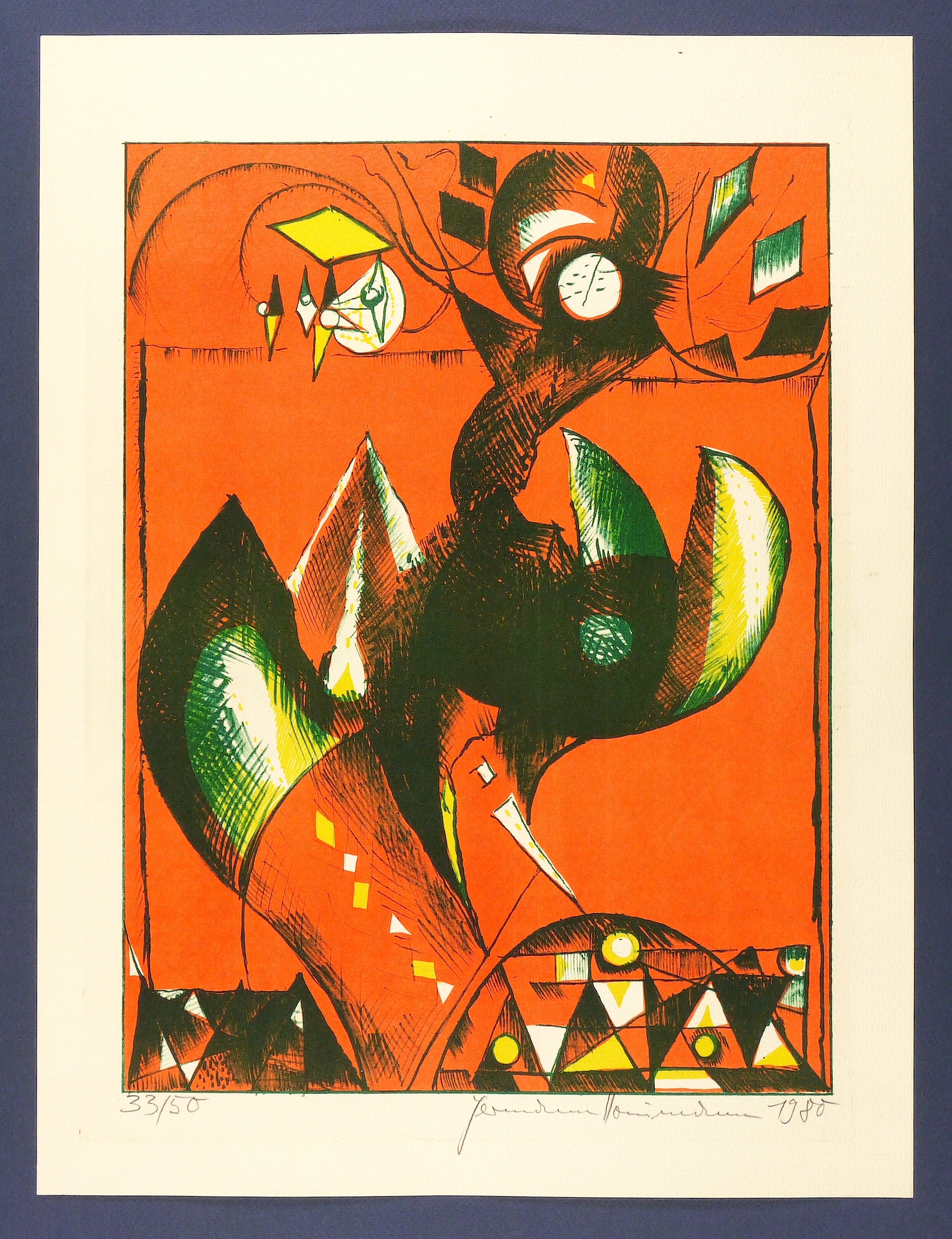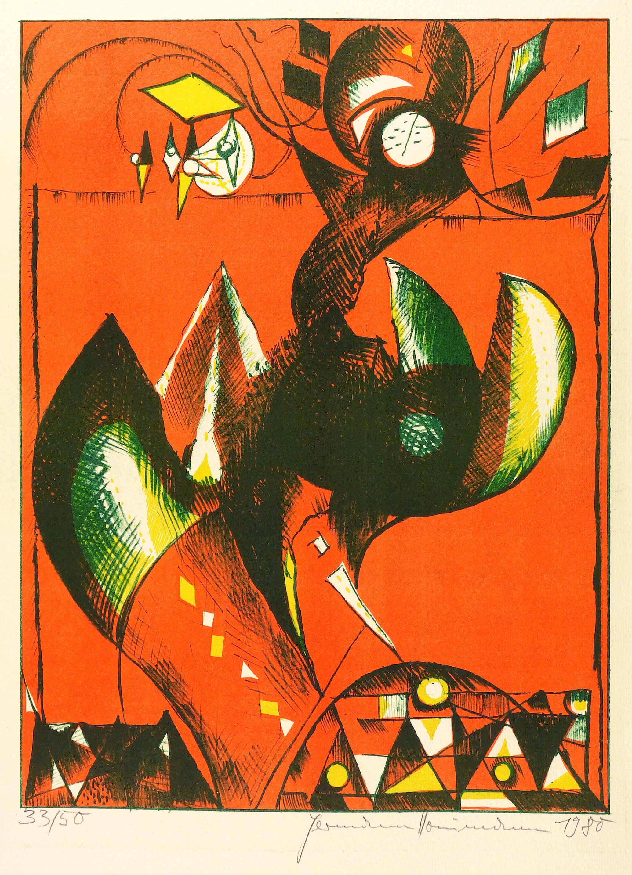 1980. Farblithografie / Kreide- & Pinsellithografie, in 3 Farben. – Von Hermann Naumann. – Auflage Exemplar Nr. 33/50. – 40,2 x 30,0 cm (Darstellung), 49 x 37 cm (Blatt).