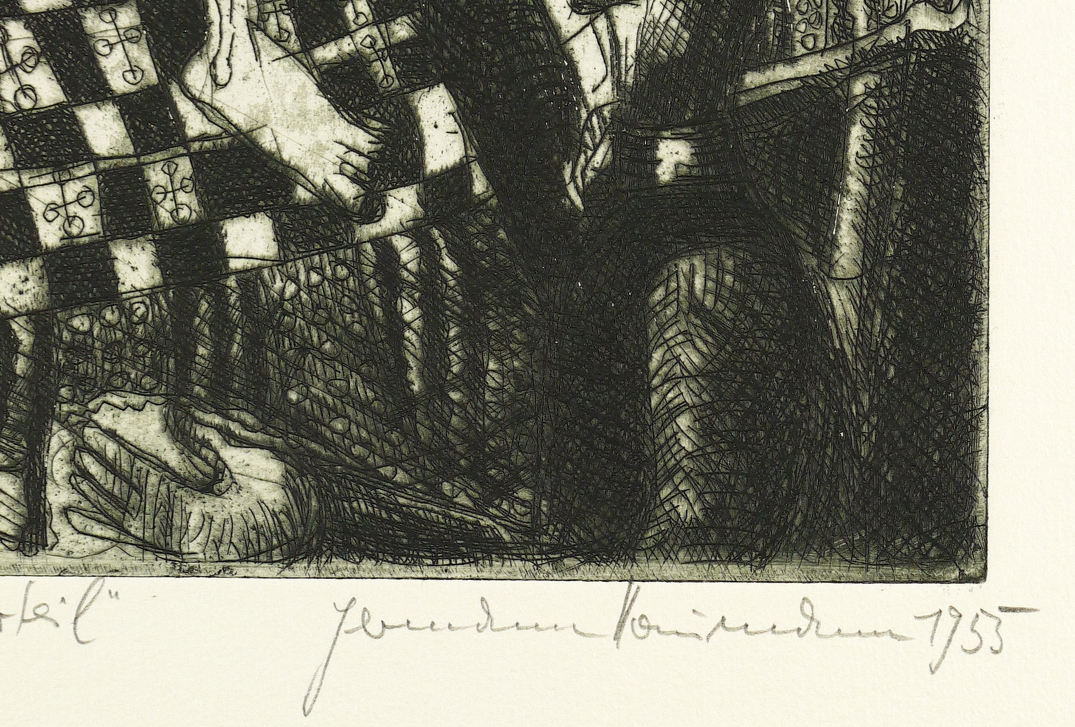 1955. Radierung / Strichätzung, in Schwarz, auf hellchamois Bütten. – Originale Künstlergrafik, von Hermann Naumann. – Auflage Exemplar Nr. 28/100. – 32,6 x 24,2 cm (Darstellung / Platte), 50 x 39 cm (Blatt).