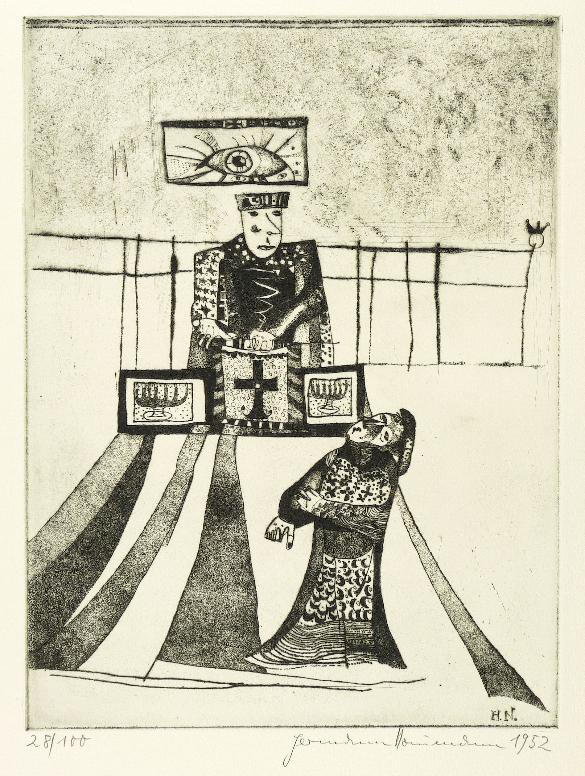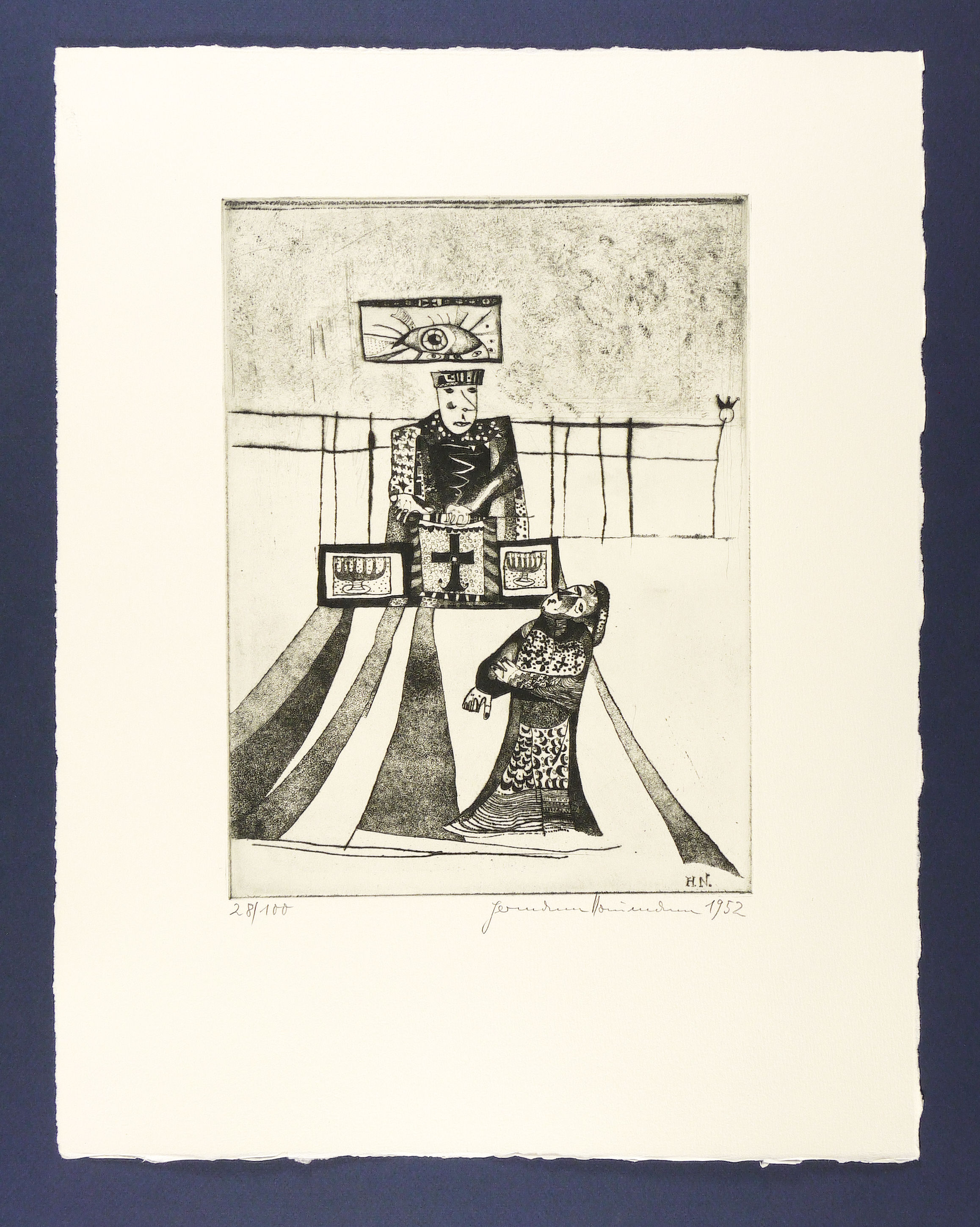 Naumann, Hermann. – Grafik zu Franz Kafka. – „Im Dom (Der Prozess)”.