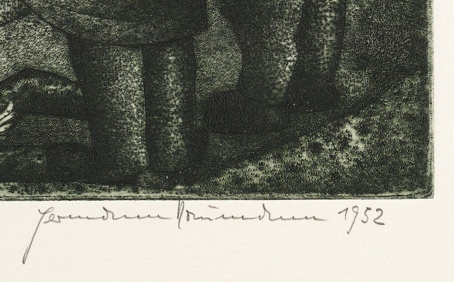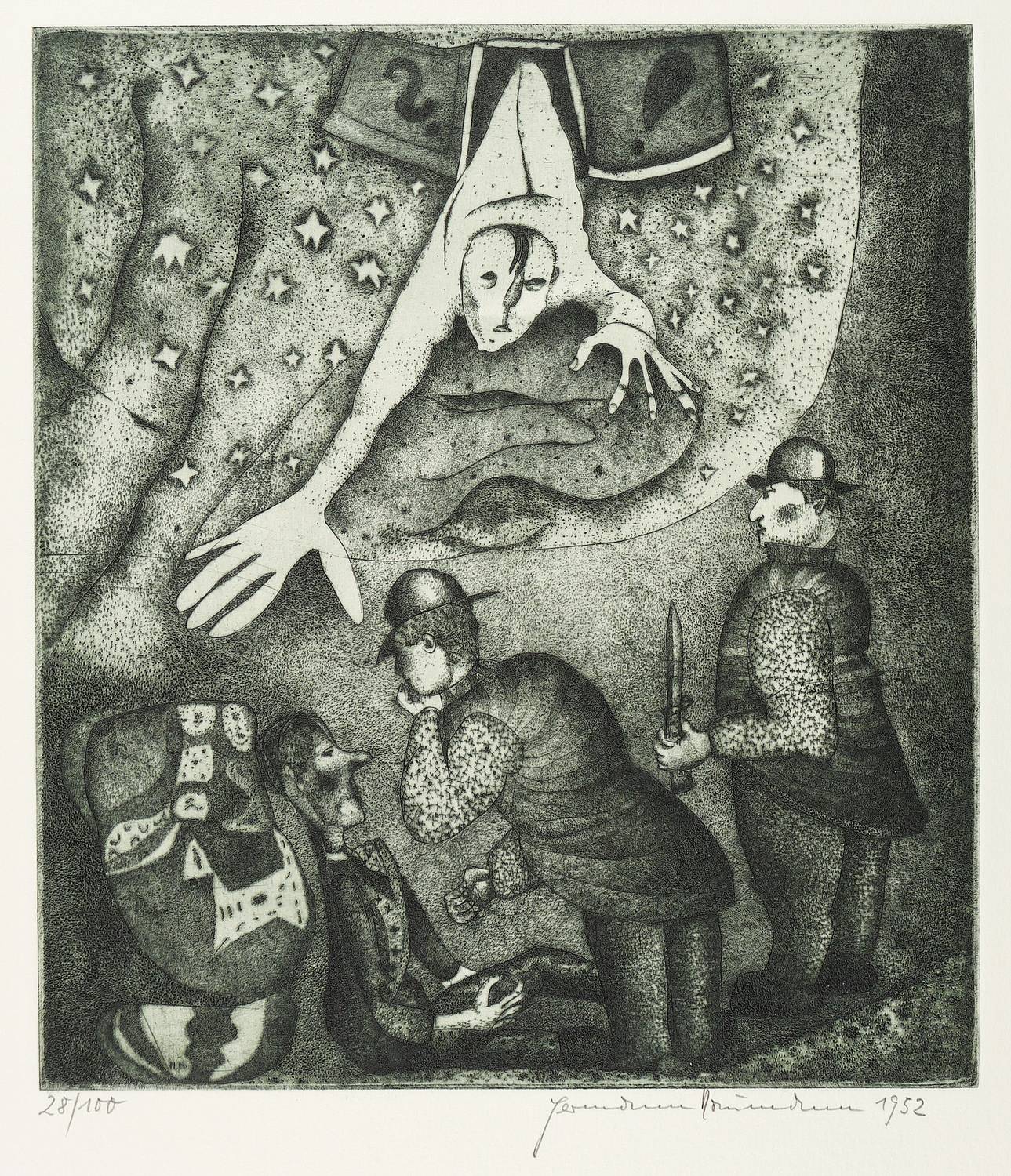 1952. Kupferstich / Linien- & Punzenstich, in Schwarz, auf hellchamois Bütten. – Originale Künstlergrafik, von Hermann Naumann. – Auflage Exemplar Nr. 28/100. – 29,6 x 26,2 cm (Darstellung / Platte), 50 x 39 cm (Blatt).