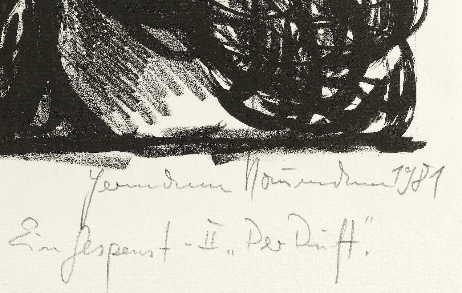 1981. Lithografie / Kreide- & Pinsellithografie, in Schwarz, auf hellgelbem Maschinenbütten. – Originale Künstlergrafik, von Hermann Naumann. – Druckerexemplar. – 38,3 x 28,0 cm (Darstellung), 50 x 38 cm (Blatt).