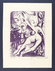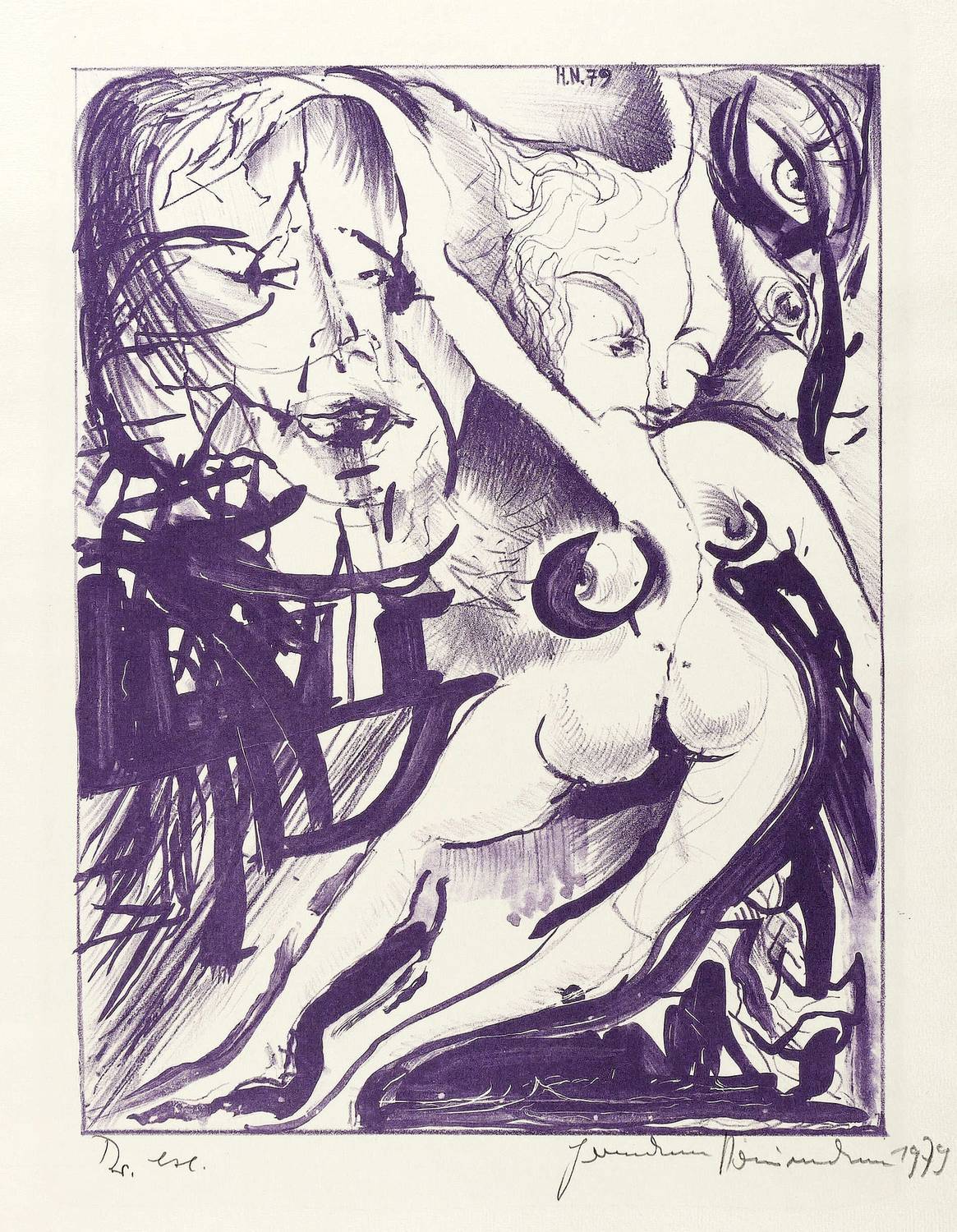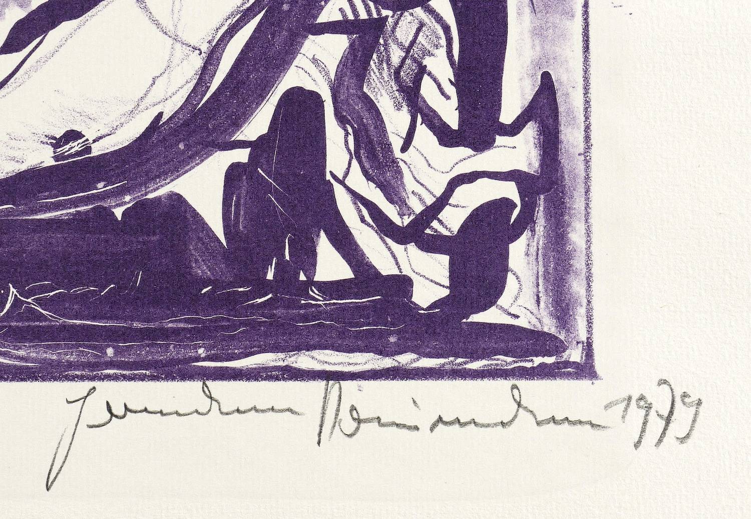 1979. Lithografie / Pinsel- & Kreidelithografie, in Schwarzviolett, auf feinem hellchamois Büttenpapier. – Von Hermann Naumann. – Druckerexemplar. – 36,8 x 27,7 cm (Darstellung / Einfassungslinie), 52,5 x 39,5 cm (Blatt).