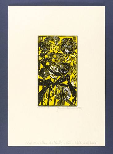 1969. Farbholzschnitt, in Gelb & Schwarz, auf wolkigem Büttenkarton. – Originale Künstlergrafik, von Hermann Naumann. – 22,8 x 12,8 cm (Darstellung / Druckstock), 45 x 31 cm (Blatt).