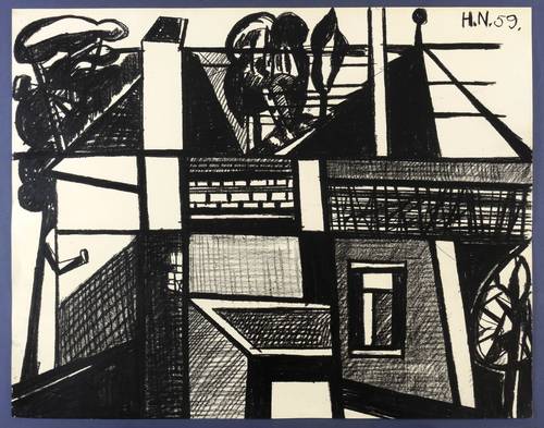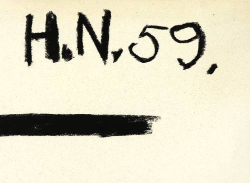 Rechts oben signiert und datiert: ″H.N. 59.″ – Aus der seltenen frühen Werkgruppe der 1959/1960 entstandenen, großformatigen und stark vom Gegenstand abstrahierenden Fettkreidezeichnungen des Künstlers. – Blattkanten minimal bestoßen. Verso Reste der originalen Montierung. Unscheinbare restaurierte Partie im oberen Bereich. Insgesamt guter Erhaltungszustand.