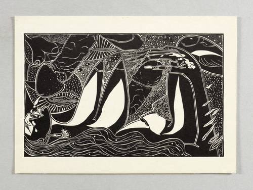 Um 1970. Cliché / Zinkätzung, in Schwarz, auf Karton. – Originale Künstlergrafik, von Hermann Naumann. – 8,3 x 13,5 cm (Darstellung / Druckbild), 10,6 x 14,9 cm (Blatt).