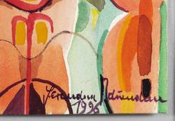 Rechts unten mit Pinsel signiert und datiert. Verso mit handschriftlichem Geburtstagsgruß in Bleistift. – Sehr schön erhalten. Tadelloses Exemplar.