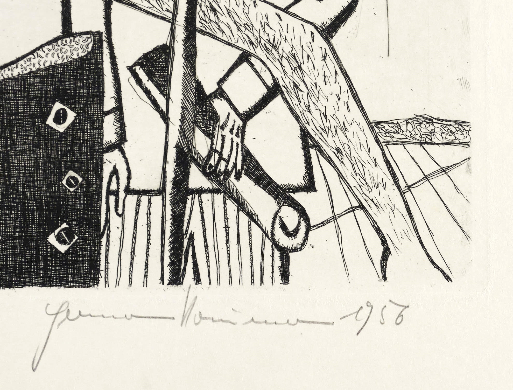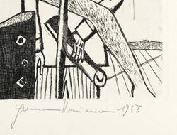 1956. Radierung / Strichätzung & Kaltnadel, in Schwarz, auf kräftigem hellchamois Velinkarton. – Originale Künstlergrafik, von Hermann Naumann. – Auflage Exemplar Nr. 15/15. – 34,1 x 51,5 cm (Darstellung / Platte), 51 x 75 cm (Blatt).