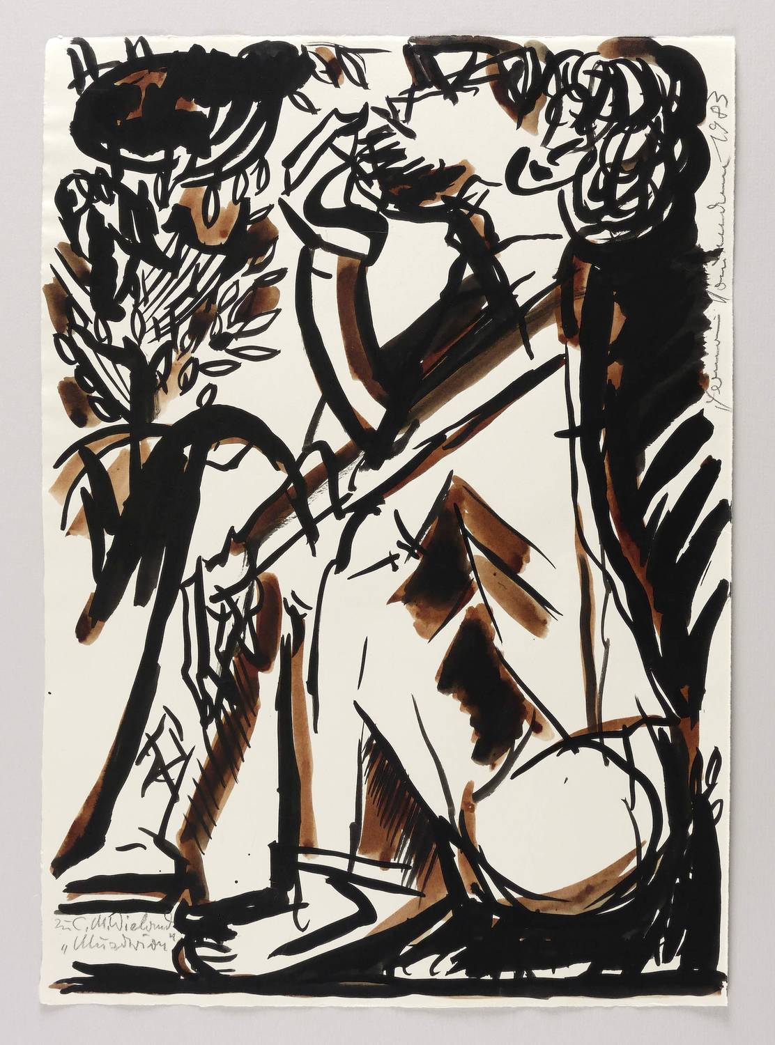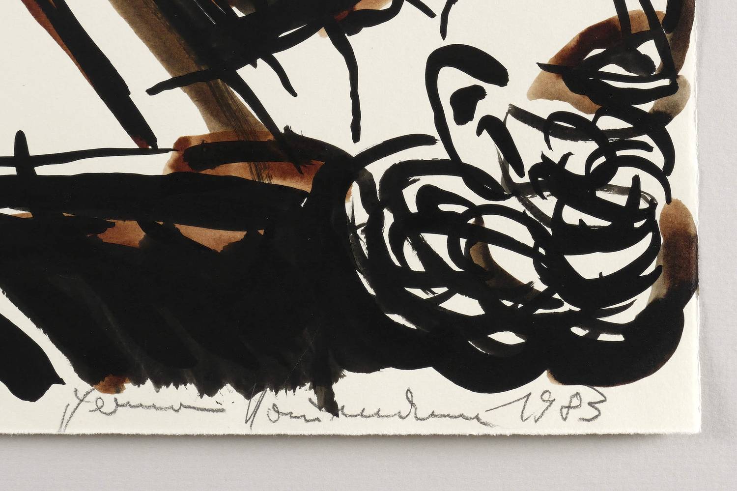 1983. Zeichnung / Pinselzeichnung, in brauner & schwarzer Tusche, auf hellem Karton. – Originale Künstlergrafik, von Hermann Naumann. – Unikat. – 42,5 x 30,1 cm (Darstellung / Blatt).