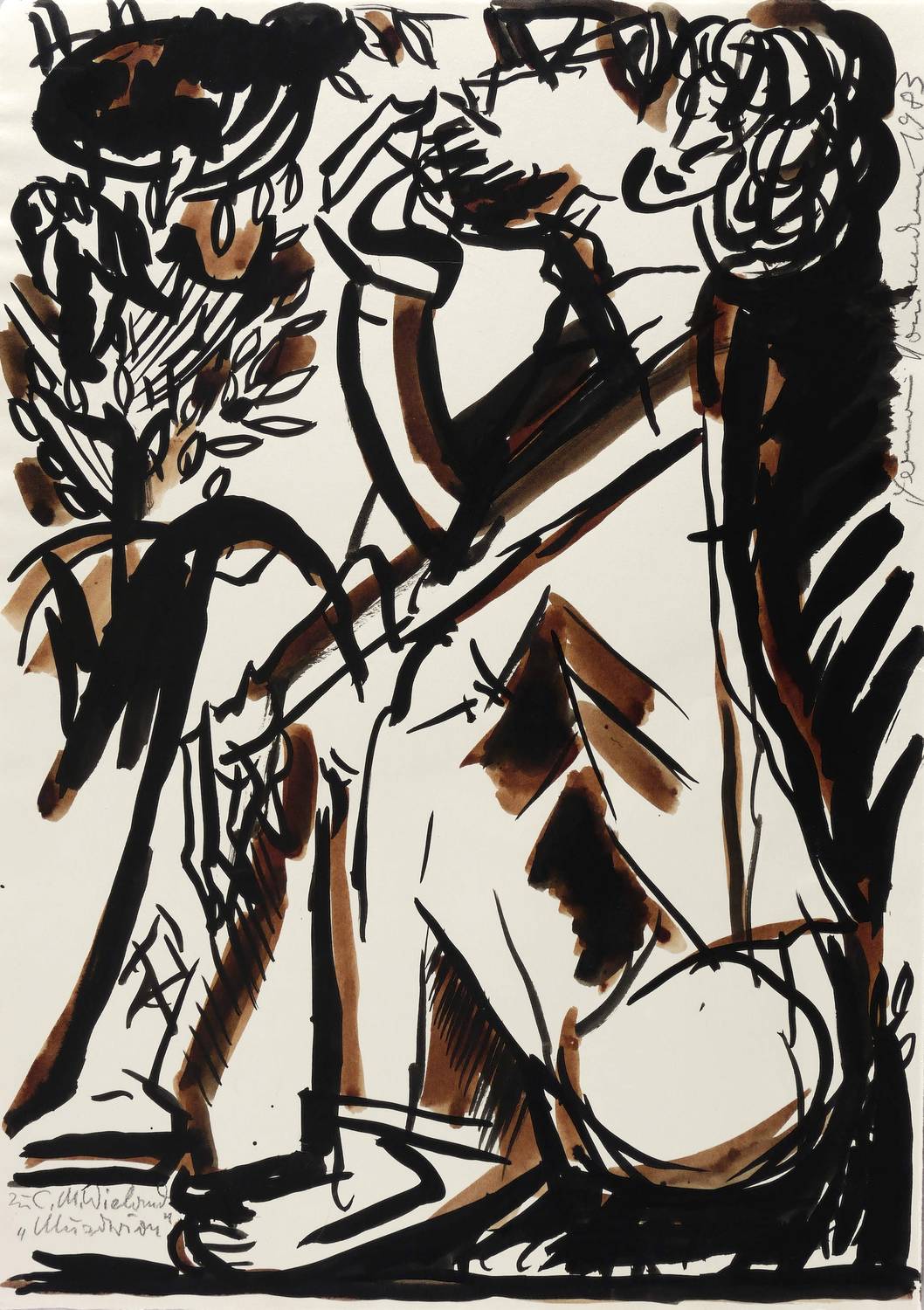 Rechts oben signiert und datiert: ″Hermann Naumann 1983″. Links unten eigenhändig bezeichnet: ″zu C.M. Wieland 'Musarion'″. – Sehr guter Zustand.