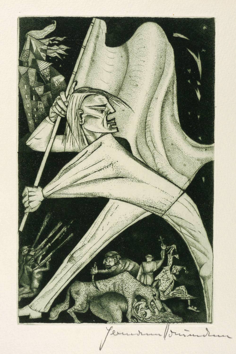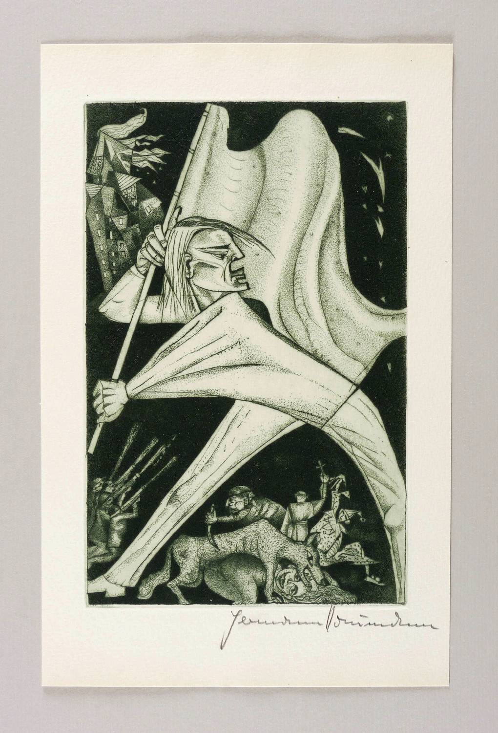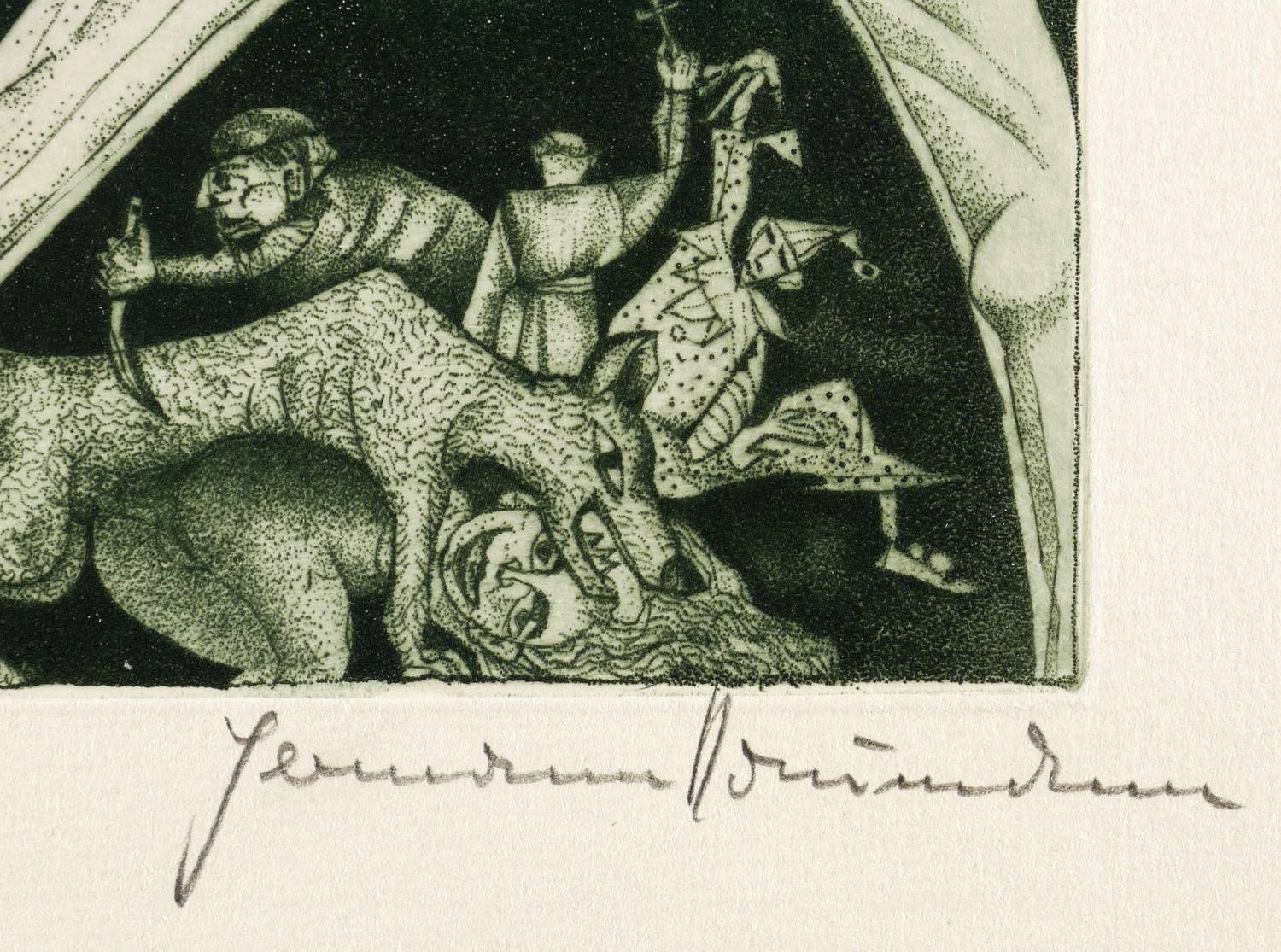 1973. Kupferstich / Punzenstich, in Grünschwarz, auf hartem Weißenborn-Maschinenbütten. – Originale Künstlergrafik, von Hermann Naumann. – Künstlerexemplar (e.a.). – 23,3 x 14,9 cm (Darstellung / Platte), 30 x 19 cm (Blatt).