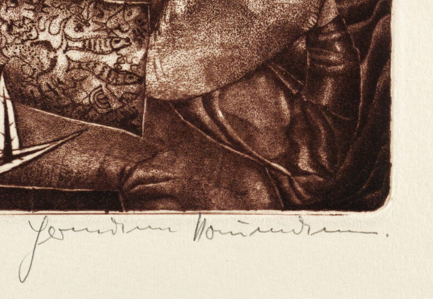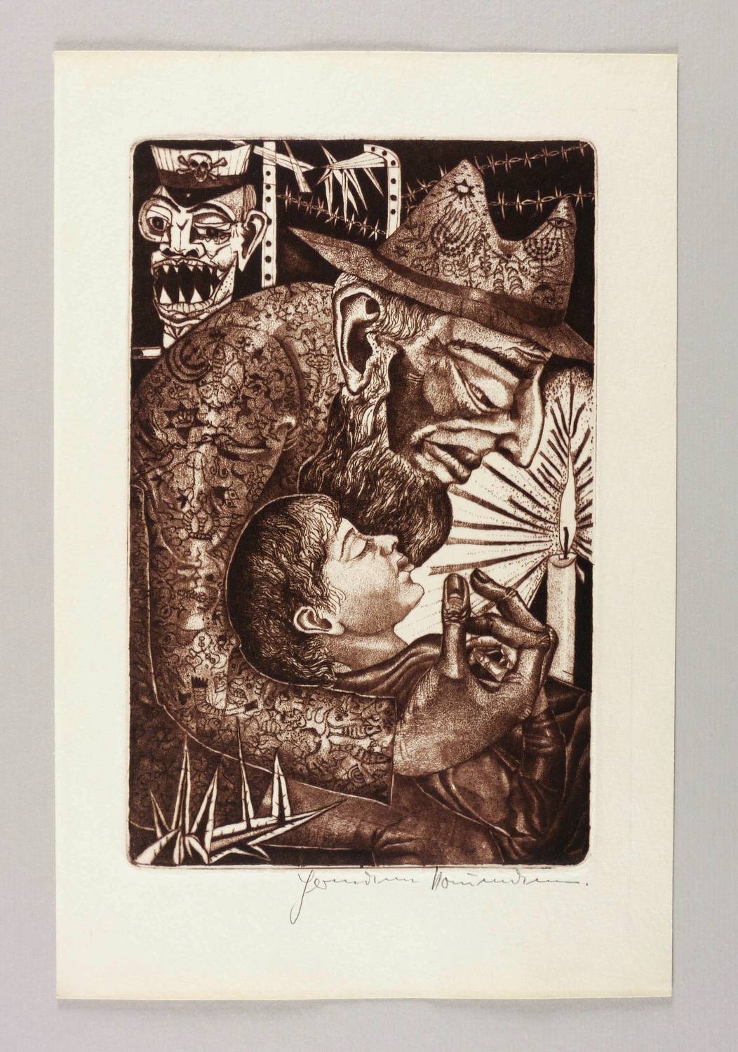 Aus: Hermann Naumann, Meine jüdischen Augen. Grafischer Zyklus von Hermann Naumann. Jiddische Dichtung aus Polen (Leipzig: Reclam 1969). – Rechts unten in Bleistift signiert: ″Hermann Naumann″. – Originalrandiges Exemplar. Papier geringfügig gegilbt. Insgesamt gut erhalten.