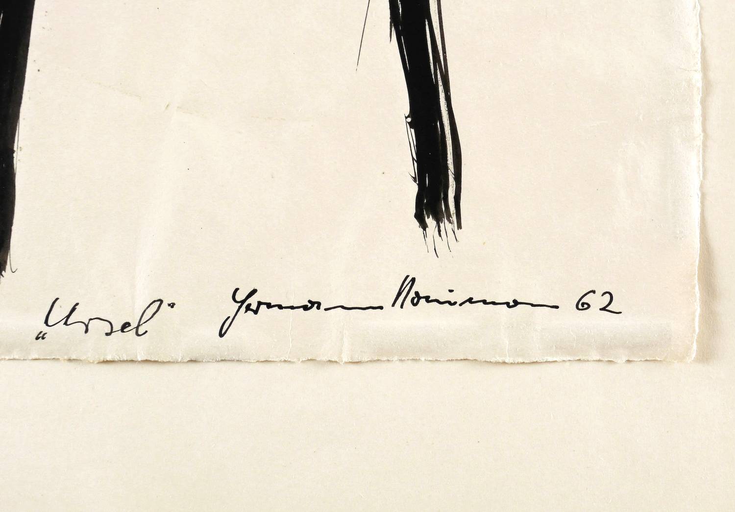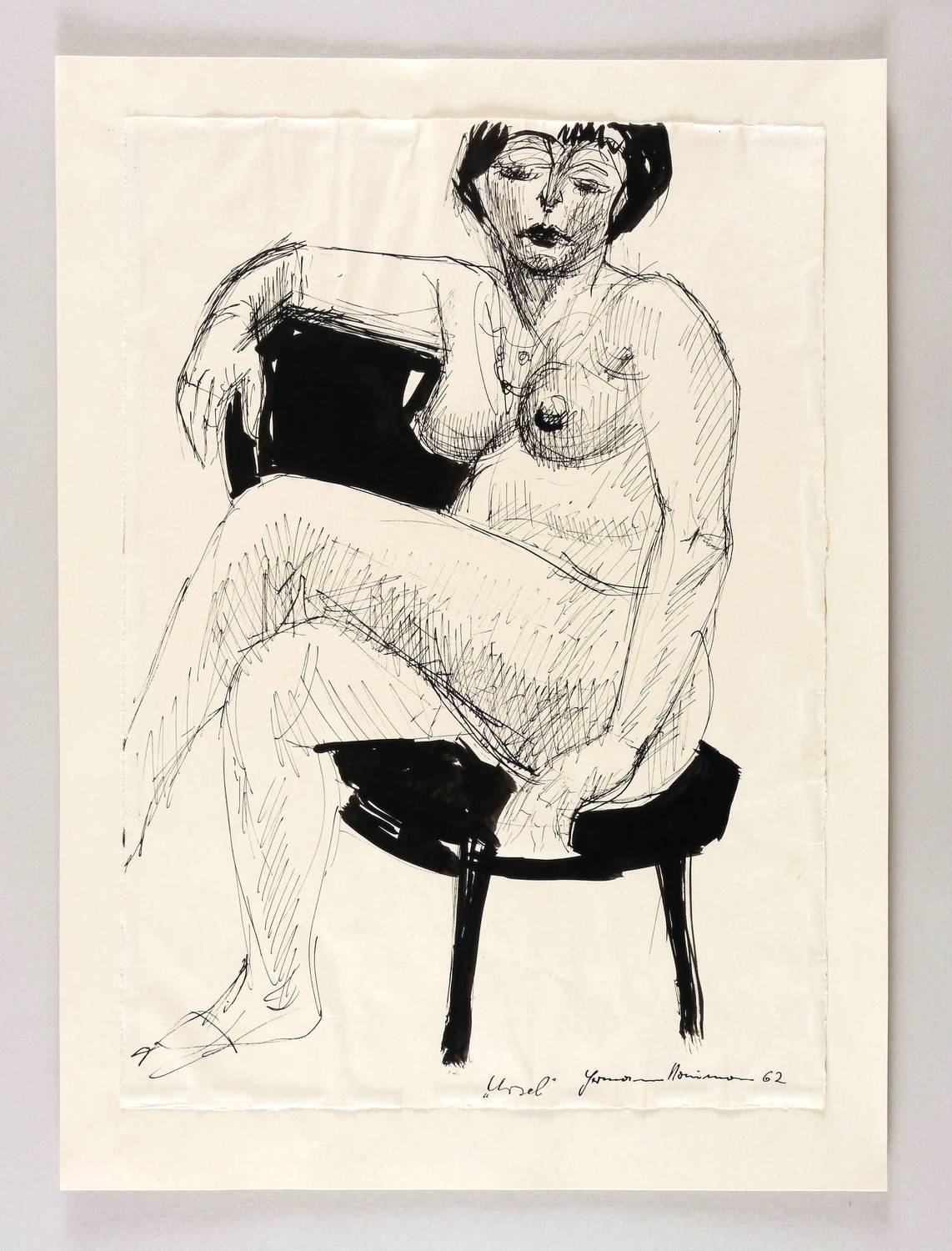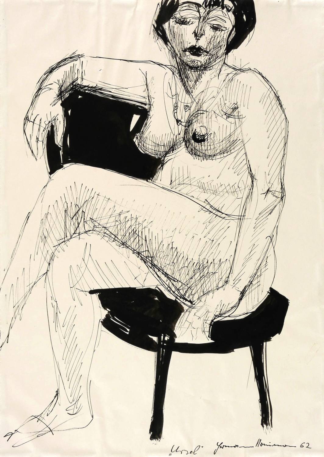 Rechts unten in schwarzer Feder signiert und datiert: ″Hermann Naumann 62″. Links daneben Titel: ″Ursel″. Auf dem Trägerkarton verso mehrfach bezeichnet. – Vom Künstler auf Trägerkarton gesetzt. Papier leicht gewellt. Sehr guter Erhaltungszustand.