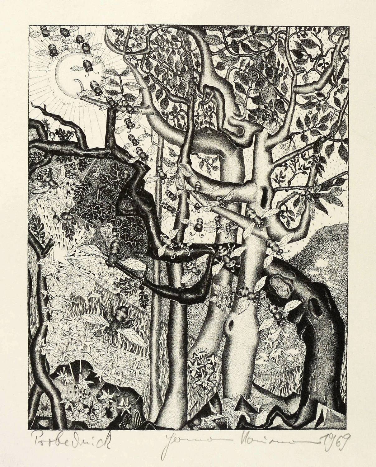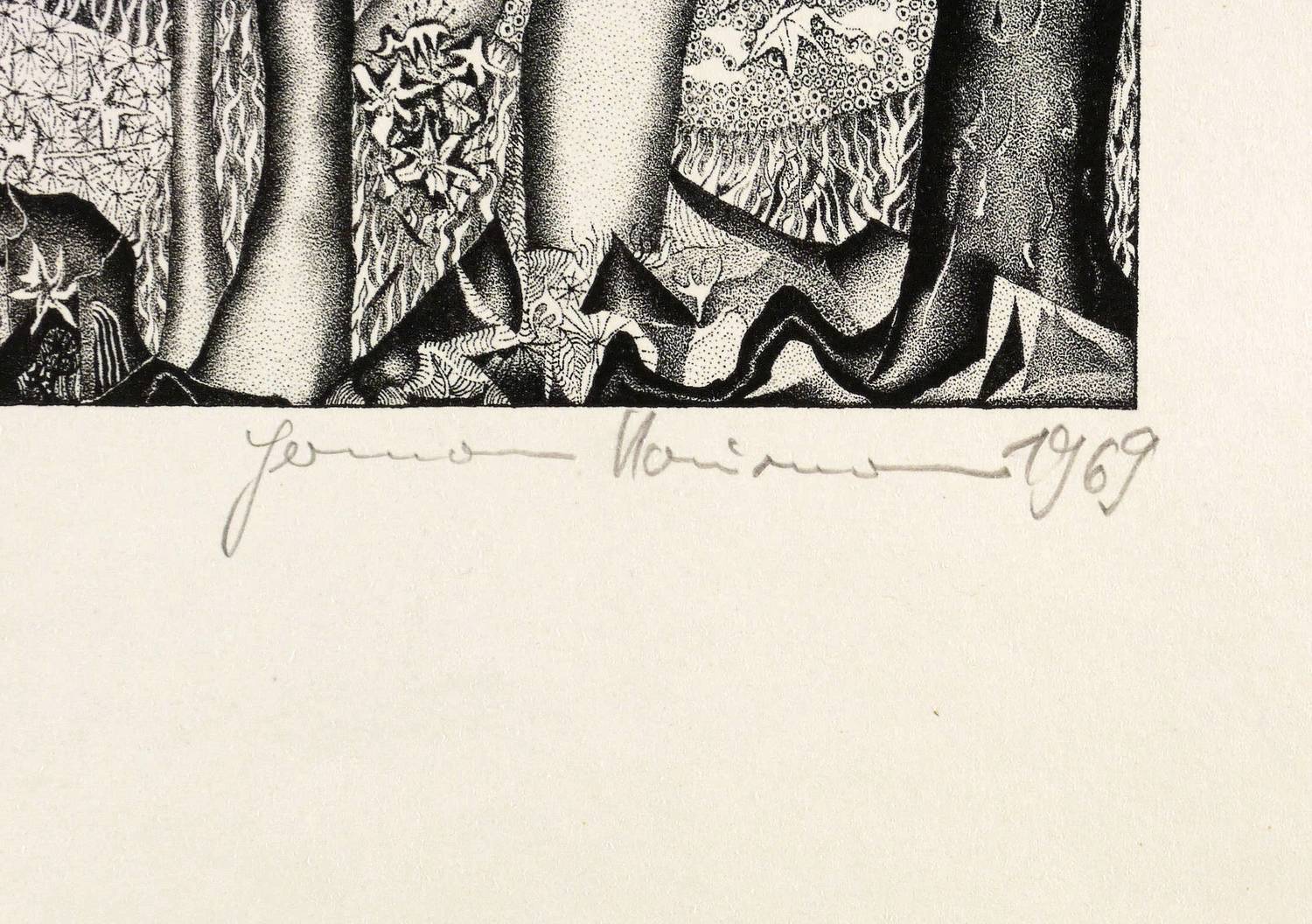 1969. Lithografie / Federlithografie, in Punktiermanier, in Schwarz, auf hartem hellchamois Velin. – Originale Künstlergrafik, von Hermann Naumann. – Probedruck. – 26,8 x 21,2 cm (Darstellung / Druckbild), 50 x 38 cm (Blatt).