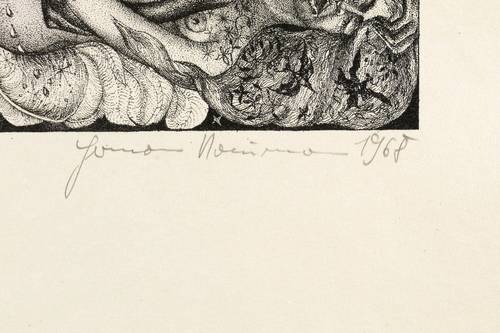Aus: Hermann Naumann, Soledades. Von Luis de Góngora y Argote (Hamburg & Düsseldorf: Claassen Verlag 1969). – Rechts unten in Bleistift signiert und datiert: ″Hermann Naumann 1968″. Links Auflagenbezeichnung: ″Probedruck″. Im unteren Blattrand weiter Folgennummer und -titel. – Im Rand minimal gewellt. Unscheinbares Fleckchen im rechten Rand. Insgesamt noch guter Zustand.