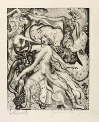 1968. Lithografie / Federlithografie, in Punktiermanier, in Schwarz, auf hartem hellchamois Velin. – Originale Künstlergrafik, von Hermann Naumann. – Probedruck. – 26,7 x 21,4 cm (Darstellung / Druckbild), 50 x 38 cm (Blatt).