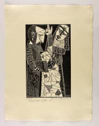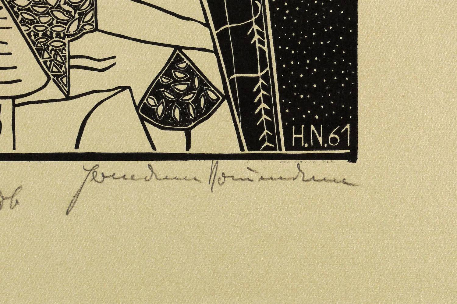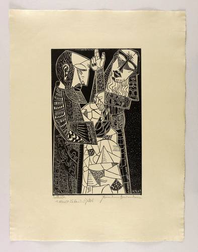 1961. Holzschnitt / Weißlinienschnitt, in Schwarz, auf hellgrau getöntem Hahnemühle-Bütten. – Originale Künstlergrafik, von Hermann Naumann. – 40,2 x 25,0 cm (Darstellung / Druckstock), 63 x 48 cm (Blatt).